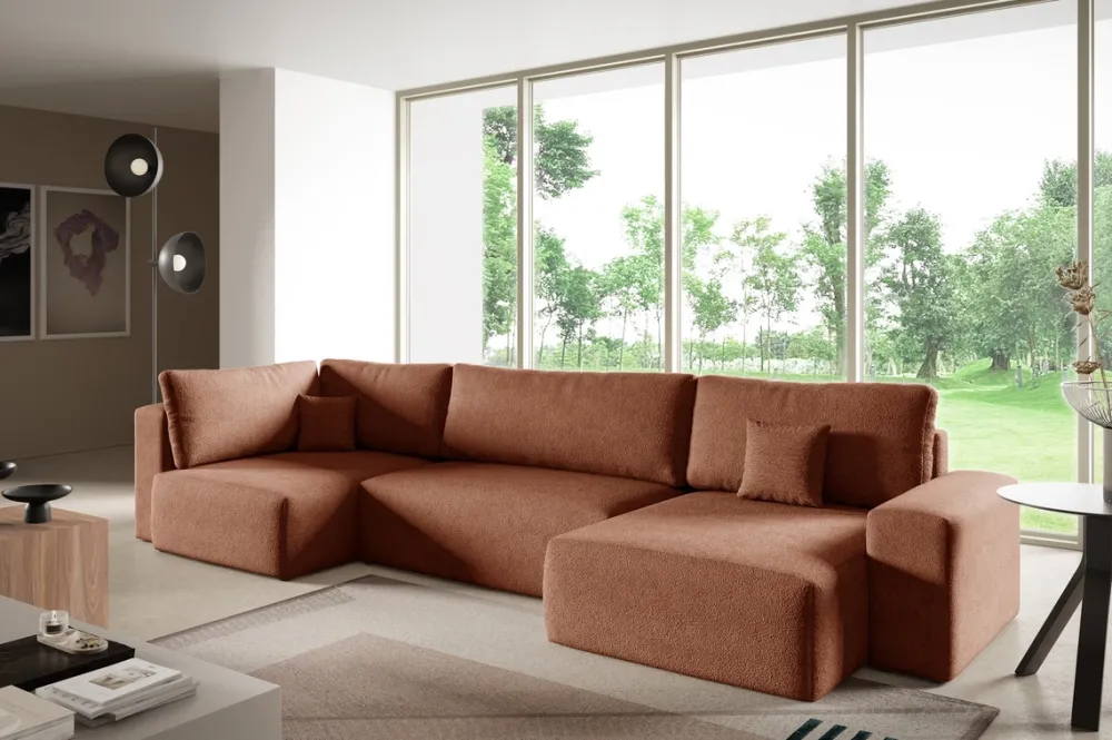 Narożniki>BROMARKT Nowoczesna kanapa narożna rozkładana z funkcją spania do salonu boucle CAMILO MAXI