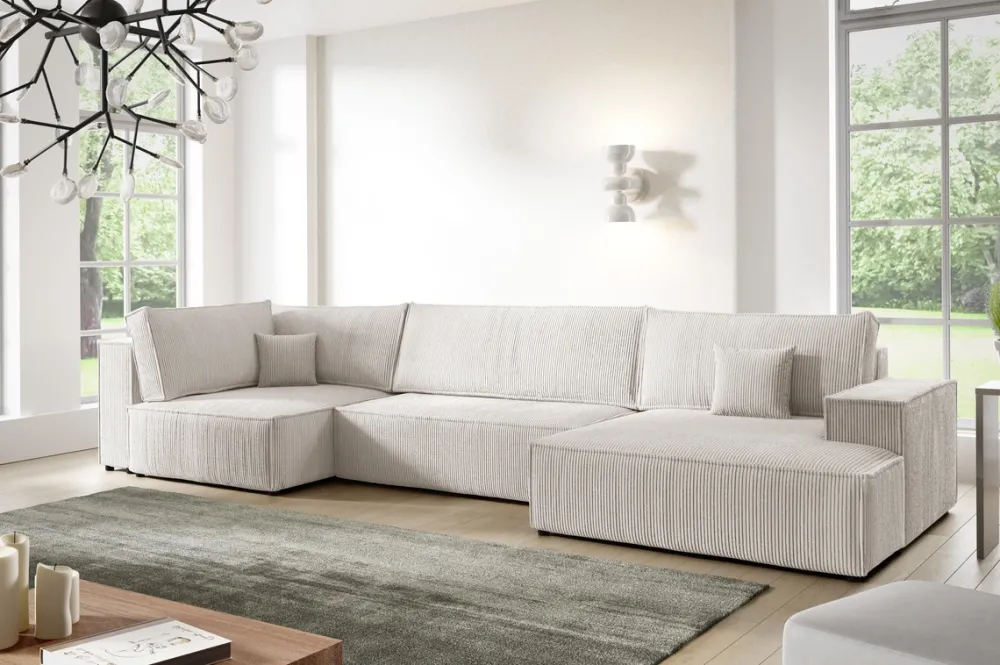 Narożniki>BROMARKT Nowoczesny narożnik do salonu w kształcie U beżowy PABLO MAXI