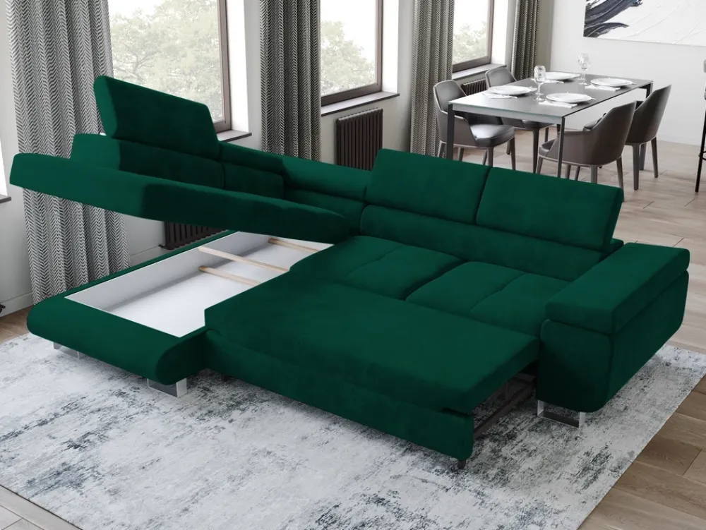 - Narożnik z funkcją spania rozkładany jest automatem delfin, który ułatwia rozkładanie, a także chroni podłogę przed powstawania zarysowań.