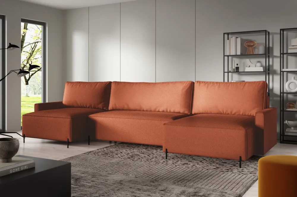 Narożniki>BROMARKT Pomarańczowy narożnik U na nóżkach rozkładany do salonu NORTON