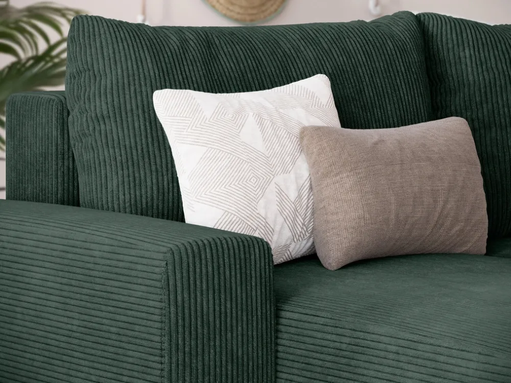 Tapicerowane plecy narożnika zapewniają estetyczny wygląd z każdej strony. Niezależnie od tego, gdzie ustawisz mebel, będzie on prezentował się doskonale, dodając elegancji i stylu Twojemu wnętrzu.