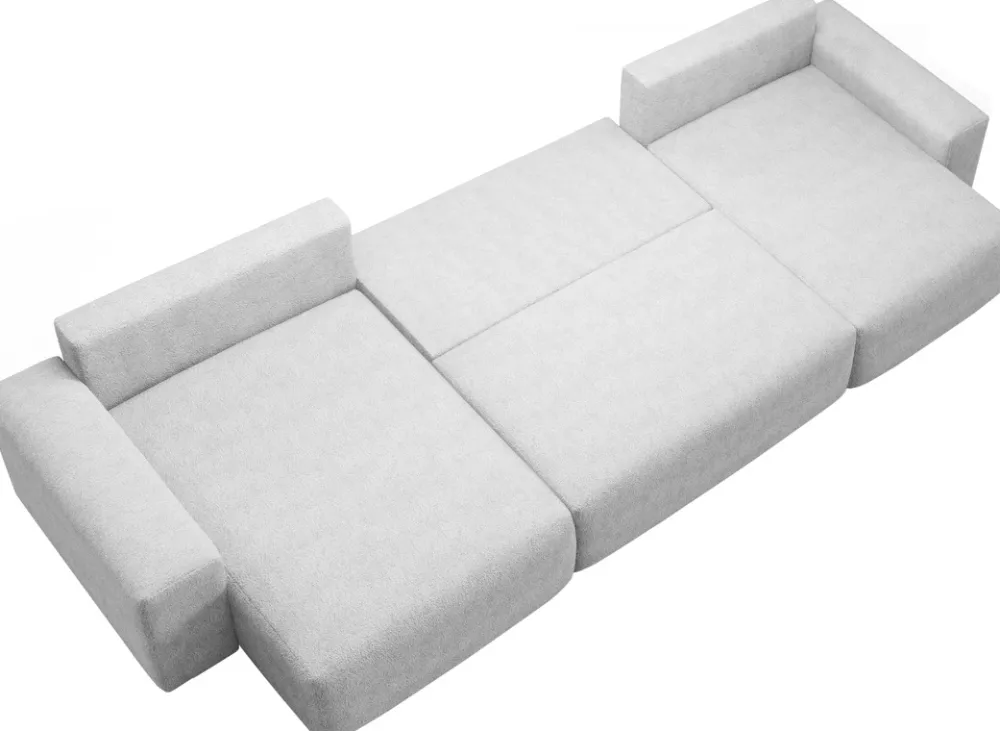 Duży narożnik rozkładany CAMILO w kształcie litery U to połączenie komfortu i stylu. Doskonale komponuje się on z nowoczesnymi oraz klasycznymi wnętrzami. Jego przestronne wymiary zapewniają więcej niż wystarczająco miejsca do siedzenia, czyniąc go idealnym miejscem do wypoczynku dla całej rodziny lub grupy przyjaciół. Stabilna konstrukcja wsparta jest przez nowoczesne rozwiązania, które zwiększają jego funkcjonalność i trwałość.