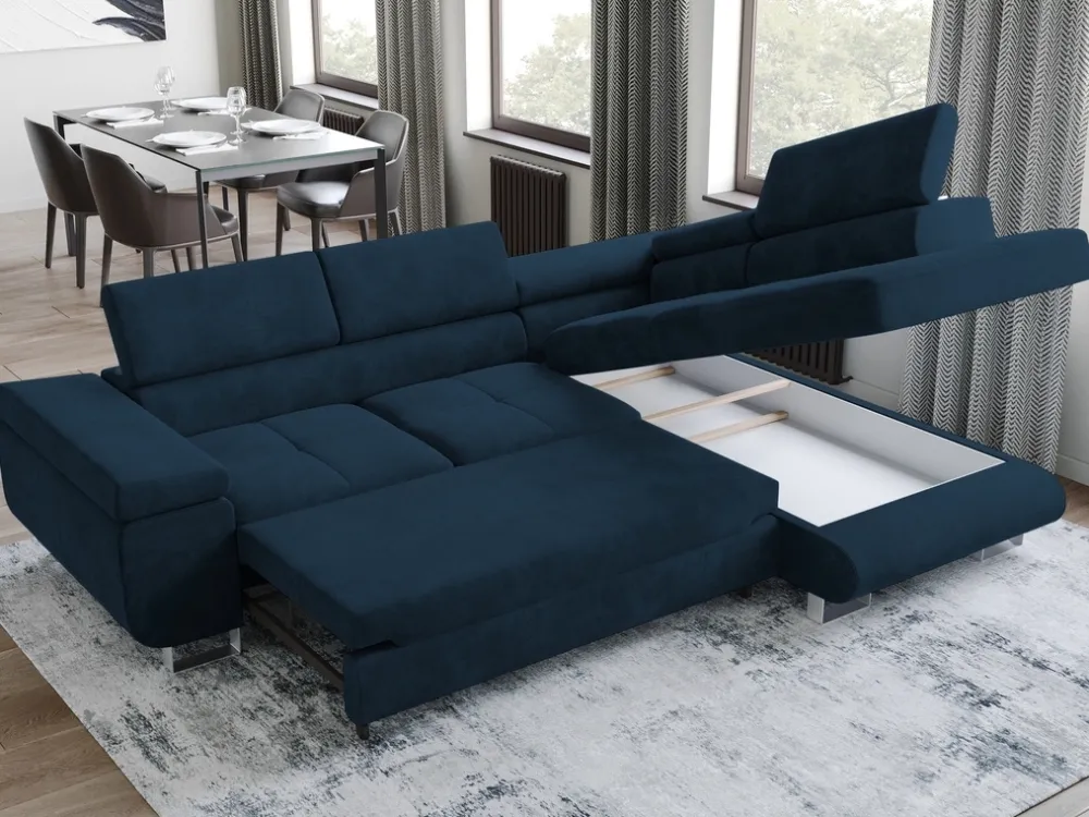 Wyjątkowy komfort użytkowania zapewnią Ci zagłówki z pięciostopniową regulacją. Niezależnie od tego, czy wciągnie Cię nowy sezon ulubionego serialu, czy po prostu chcesz odpocząć po długim dniu, bezproblemu dostosujesz rozkładany narożnik wedle swoich preferencji.