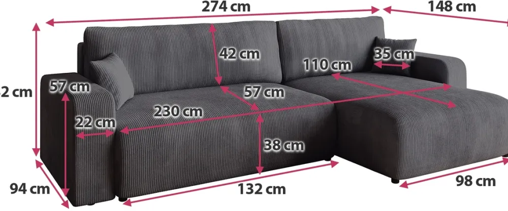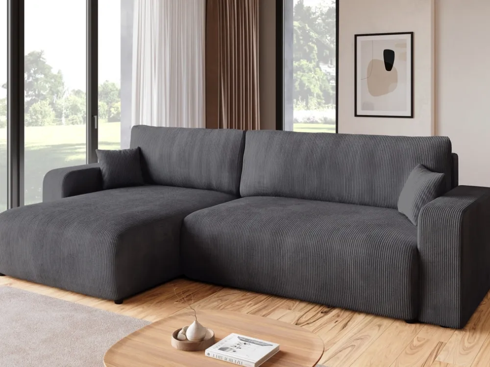 Narożniki>BROMARKT Rozkładana szara kanapa narożna z funkcją spania PUMI XL