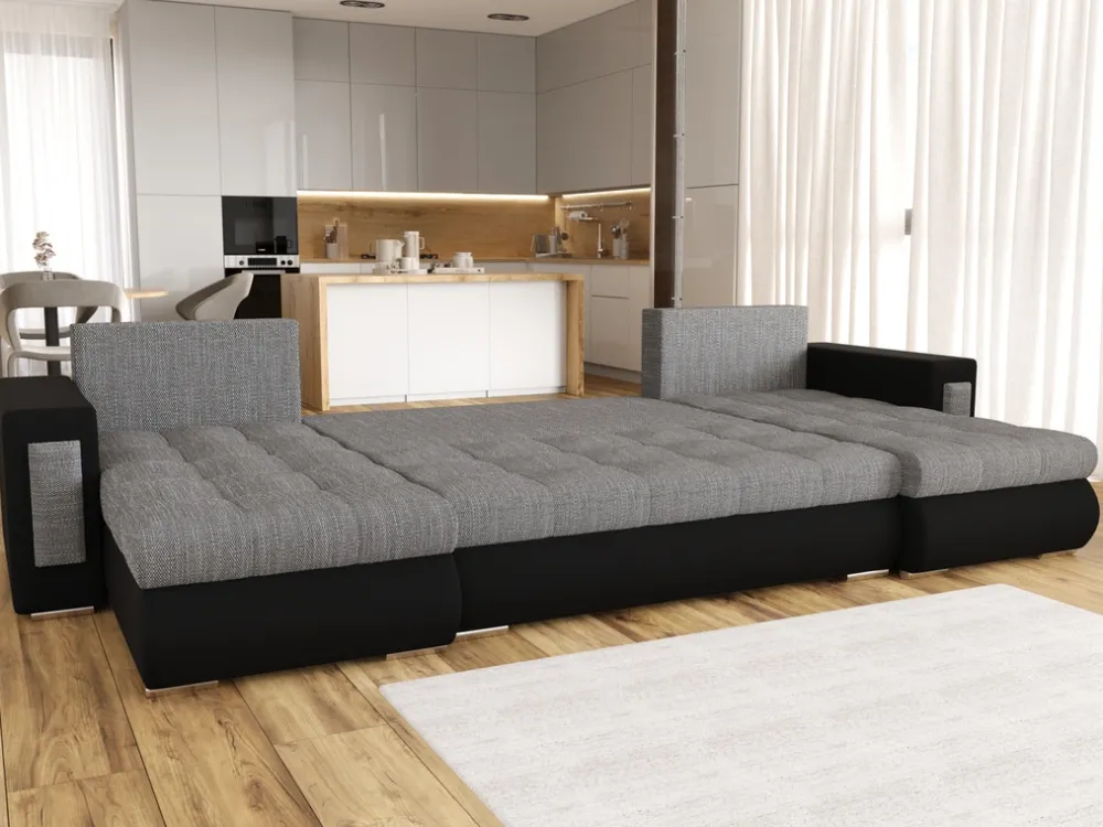 Dzięki funkcji spania narożnik U z łatwością zamienisz w duże, wygodne łóżko. Pojemny schowek na pościel pomoże utrzymać porządek, zapewniając dodatkowe miejsce do przechowywania.