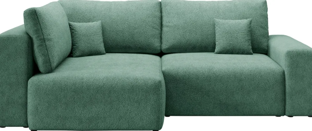 Oprócz funkcjonalności, narożnik z funkcją spania CAMILO DUO zachwyca swoją kolorystyką. Tkanina boucle dodaje meblowi subtelnej elegancji, a neutralne kolory tkaniny są łatwe do dopasowania do różnorodnych wnętrz. Komplet trzech dużych poduch oparciowych oraz dwóch mniejszych poduszek zapewnia nie tylko komfort, ale także stanowi stylowe uzupełnienie całości.