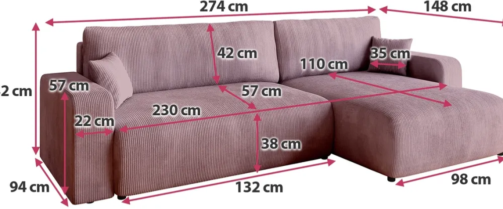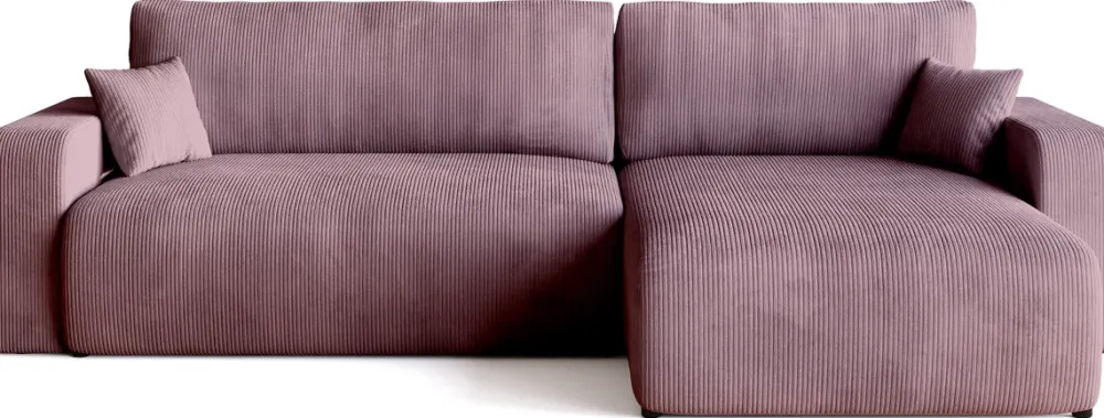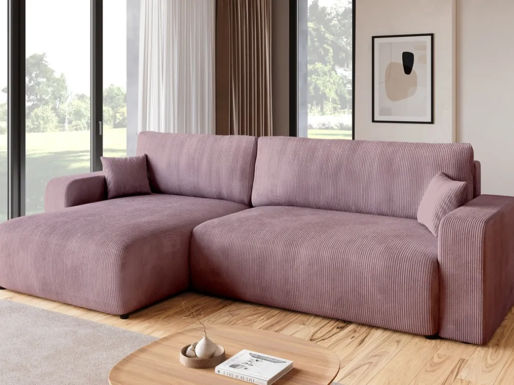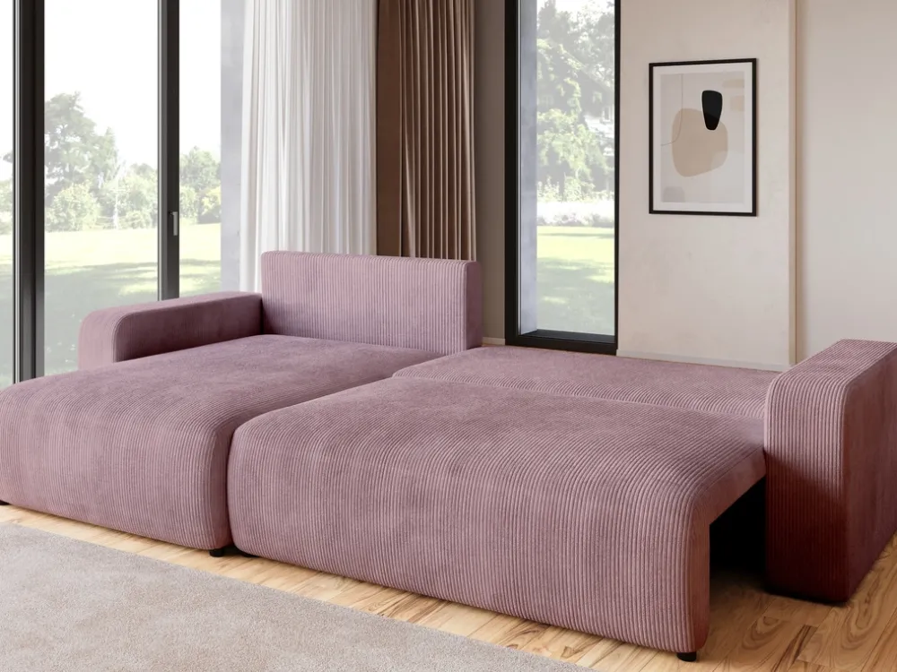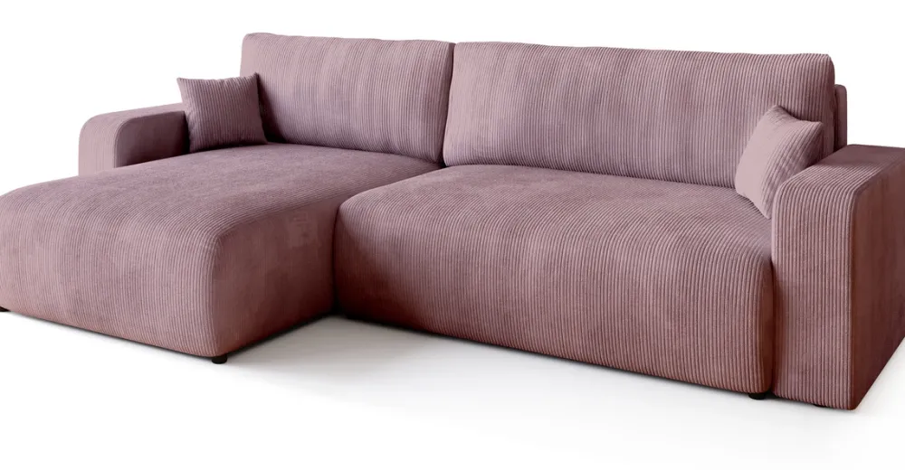 Narożniki>BROMARKT Różowa sztruksowa kanapa narożna z funkcją spania PUMI XL