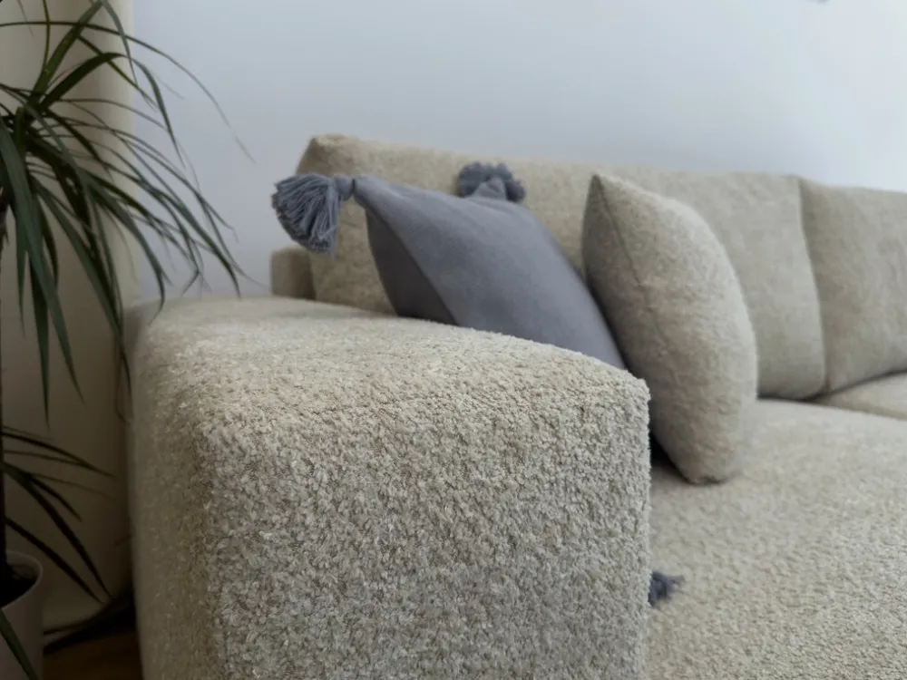 - Narożnik posiada tapicerowane plecy w tej samej tkaninie co reszta mebla, oznacza to, że można ustawić mebel nawet pośrodku salonu.