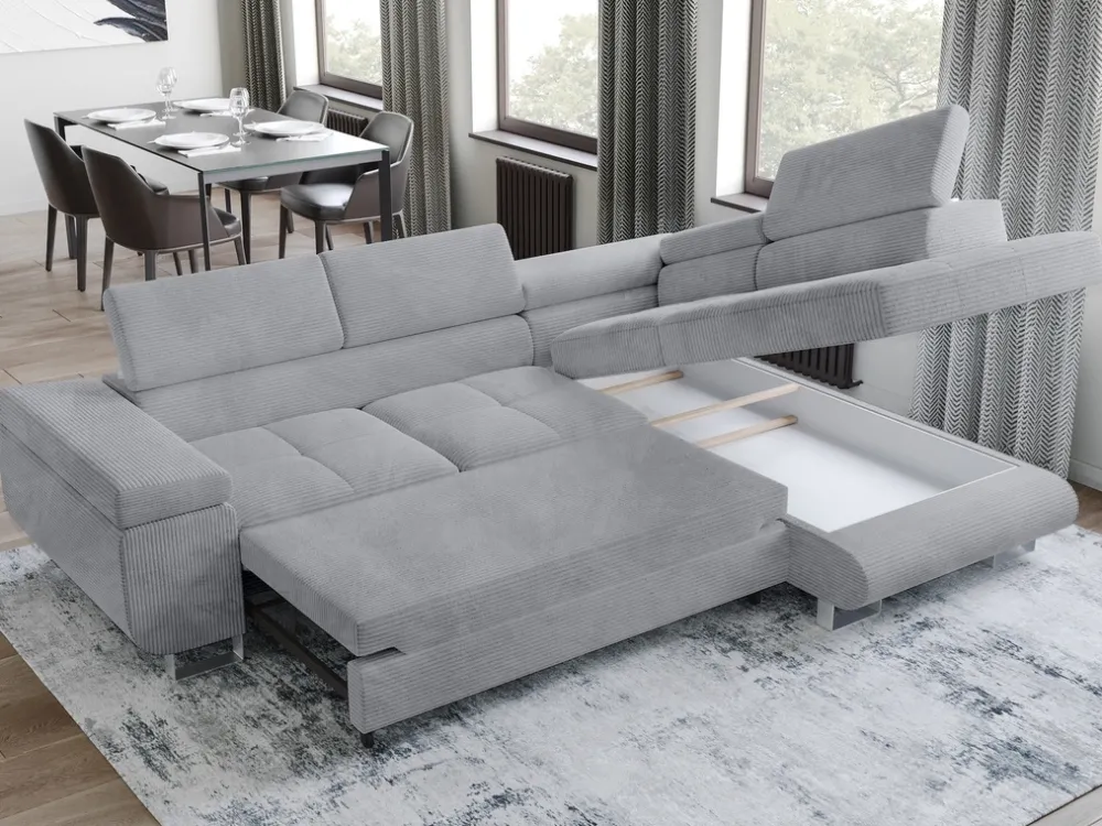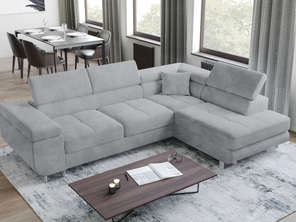 Narożniki>BROMARKT Szara kanapa narożna z funkcją spania ANTON sztruks