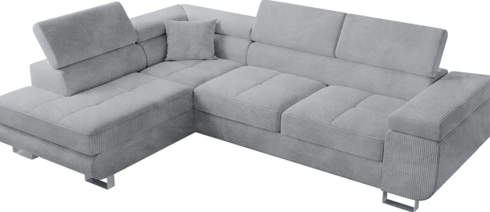 Regulowane zagłówki pozwalają dostosować rozkładany narożnik do indywidualnych potrzeb. Wybierz jedno z pięciu ustawień zagłówka i ciesz się chwilą relaksu z książka, wieczorem przy Netflixie lub odpoczynkiem po ciężkim dniu.