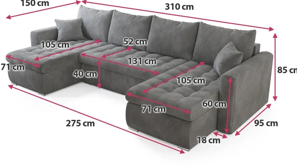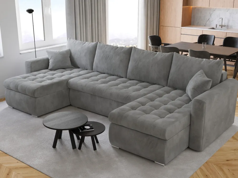 Narożniki>BROMARKT Szara welurowa rogówka rozkładana do salonu z funkcją spania LUIS U