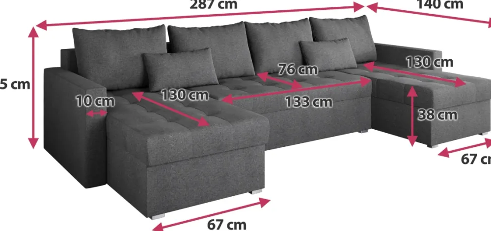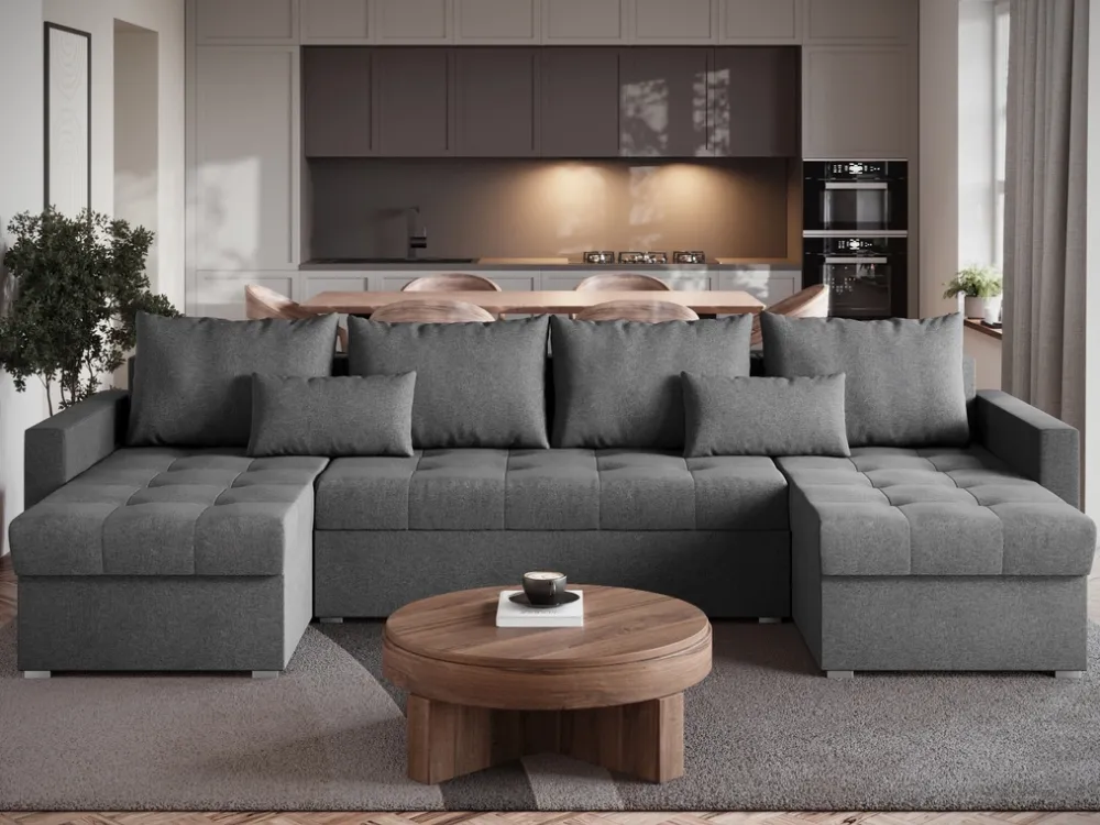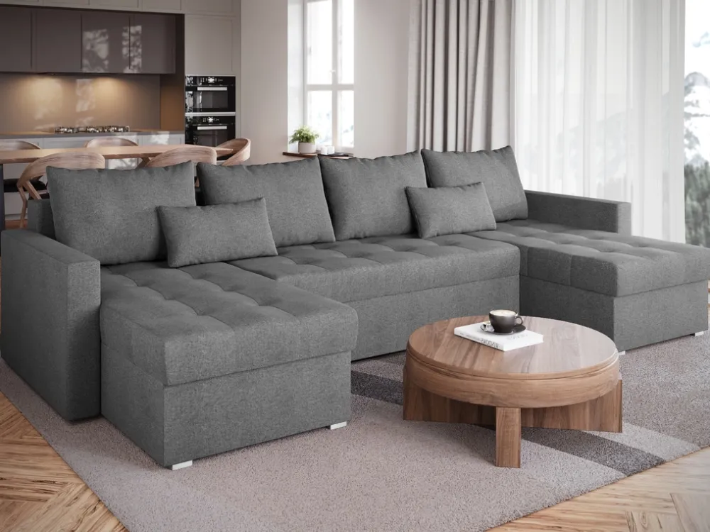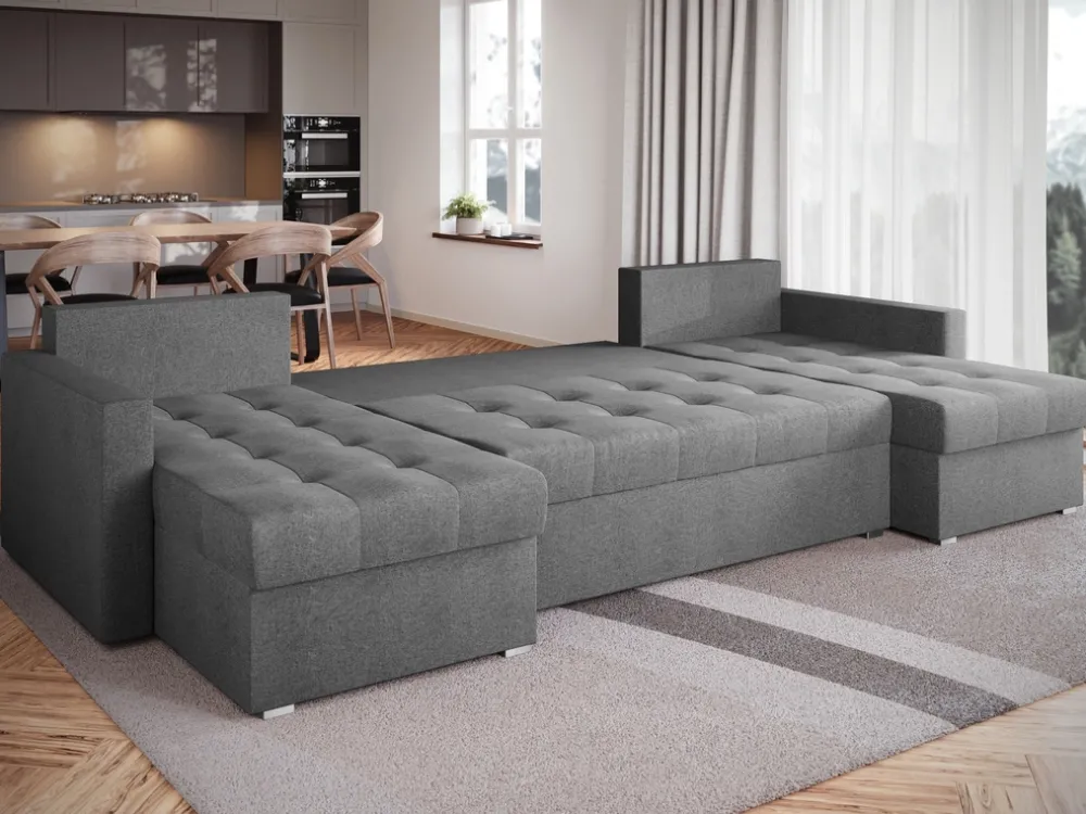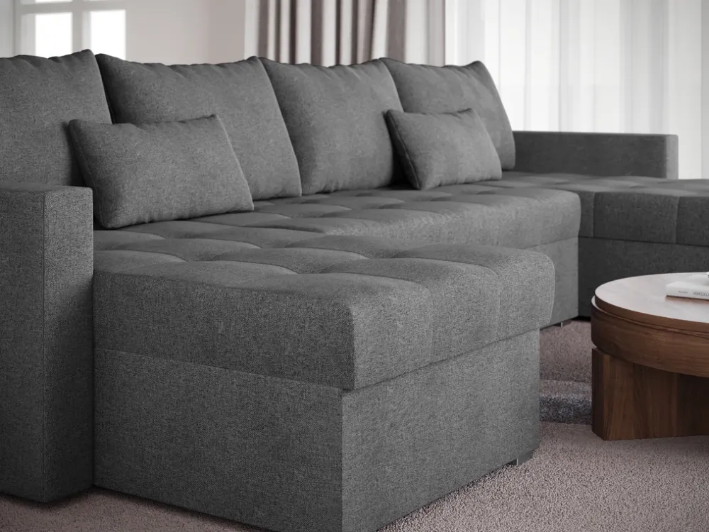 Narożniki>BROMARKT Szary duży narożnik z funkcją spania i pojemnikiem do salonu HOT U