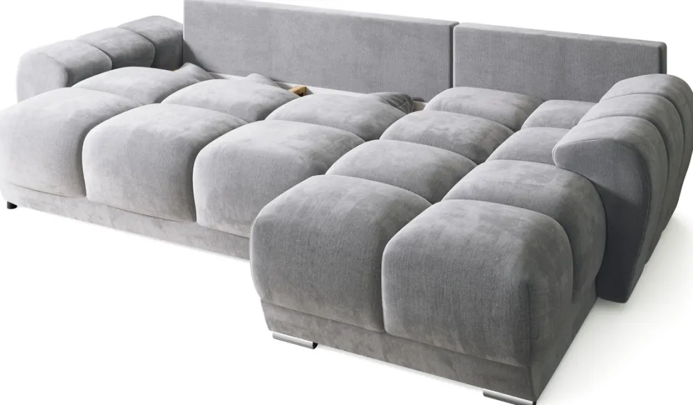 Narożnik posiada możliwość zmontowania w orientacji lewostronnej lub prawostronnej. Pozwala to na dostosowanie mebla do układu pomieszczenia, dzięki czemu podczas przemeblowania, wystarczy przełożyć wysuniętą część narożnika na drugą stronę, aby idealnie wpasowywał się w aranżacje.