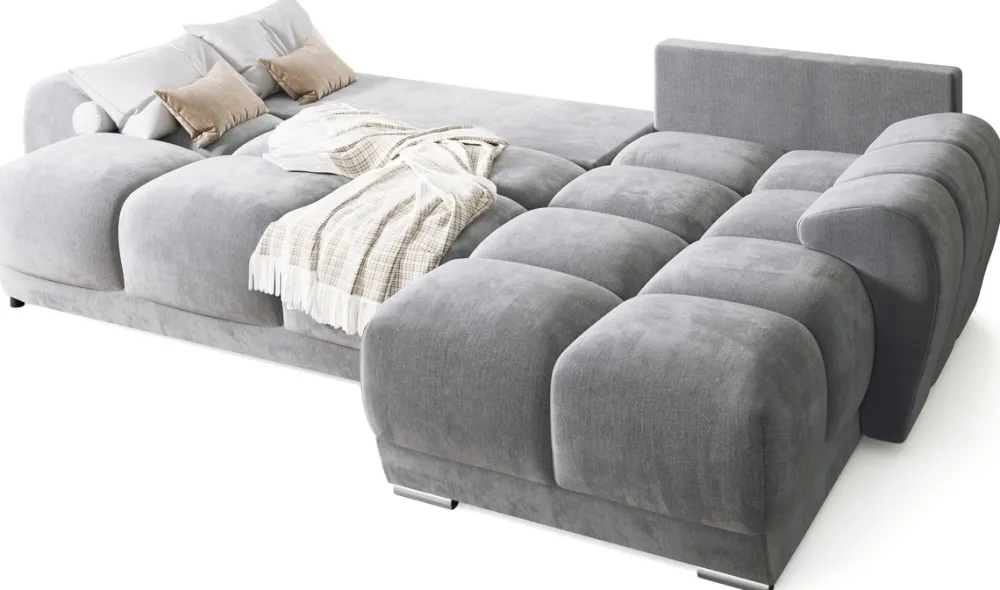 Narożnik wyposażony jest w automat rozkładania DL, który umożliwia szybkie i łatwe przekształcenie go w przestronne łóżko o wymiarach 130×220 cm. To idealne rozwiązanie dla niespodziewanych gości lub relaksujących seansów filmowych z rodziną. Dodatkowo, mebel posiada pojemnik na pościel ukryty pod siedziskiem, co jest świetnym sposobem na zaoszczędzenie miejsca i utrzymanie porządku w salonie.