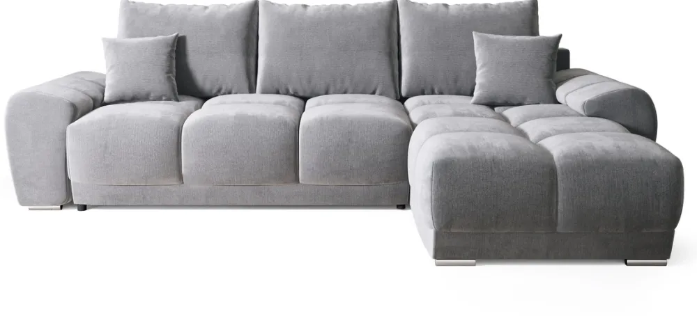 - Uniwersalna konstrukcja kanapy narożnej pozwoli zdecydować o finalnym ustawieniu podczas montażu.