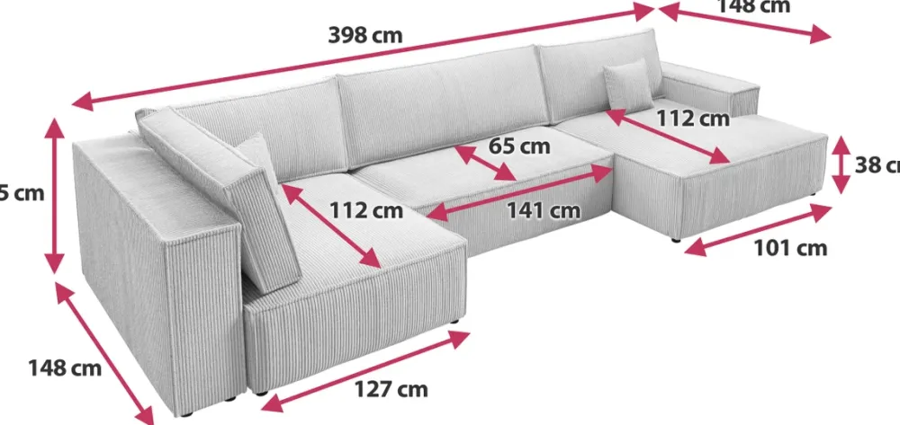 Narożniki>BROMARKT Szary narożnik do salonu w kształcie U rozkładany PABLO MAXI