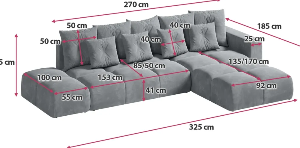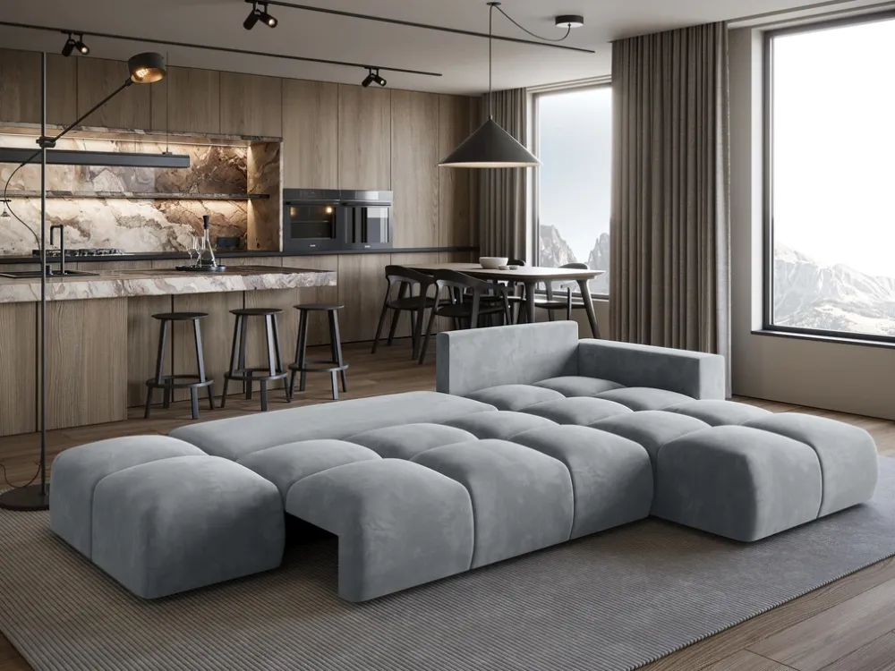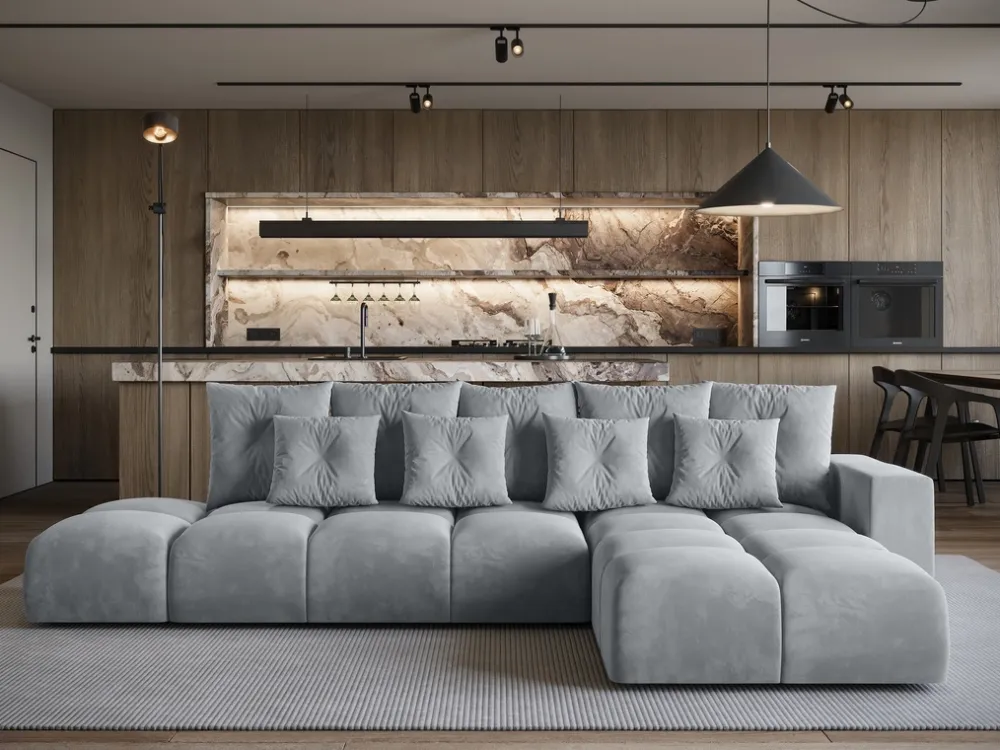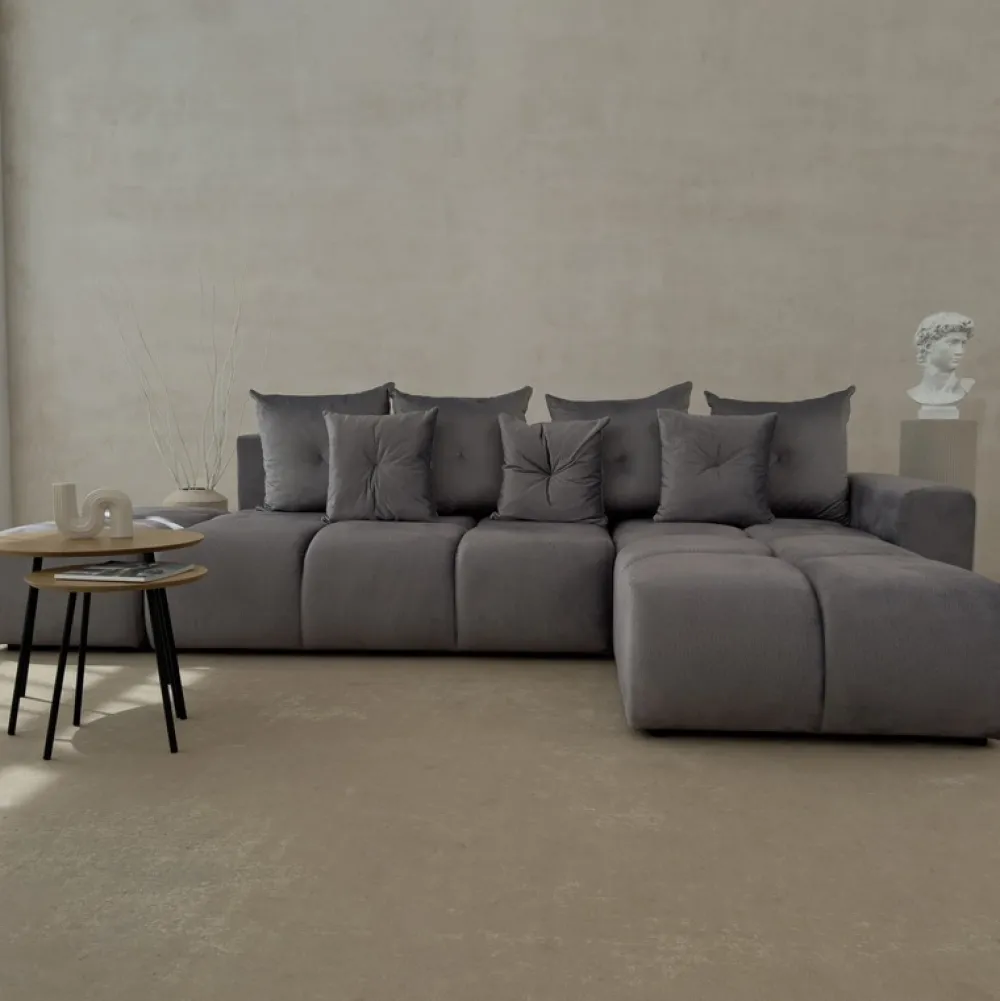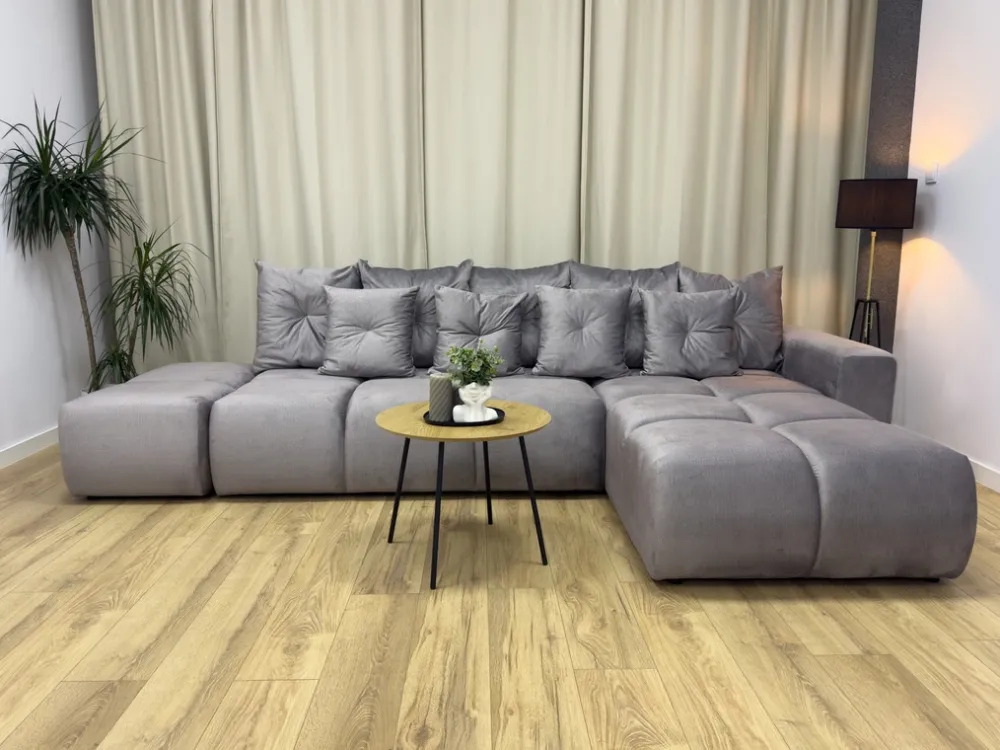 Narożniki>BROMARKT Szary narożnik rozkładany nowoczesny z funkcją spania RAMIRO