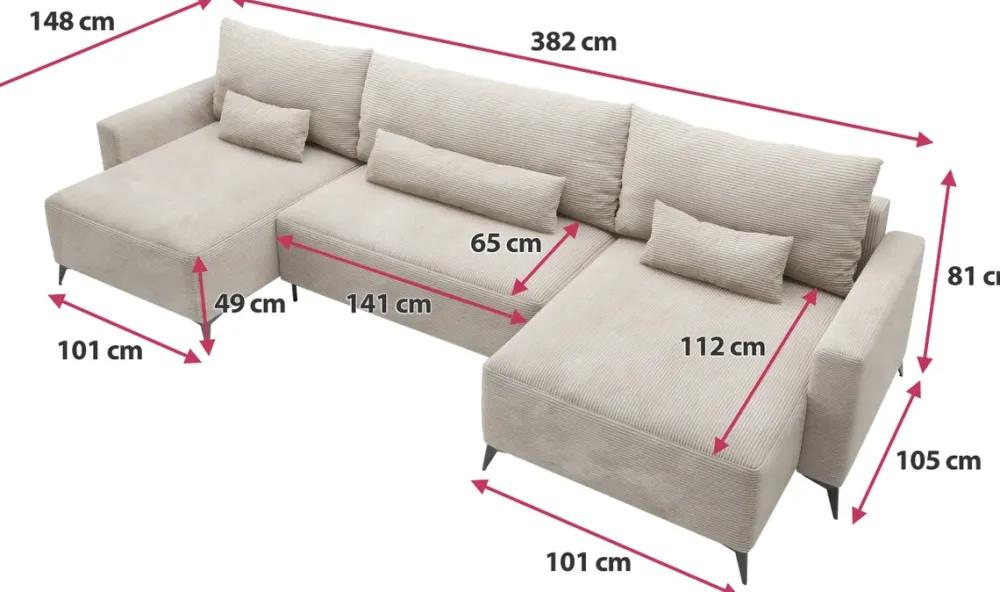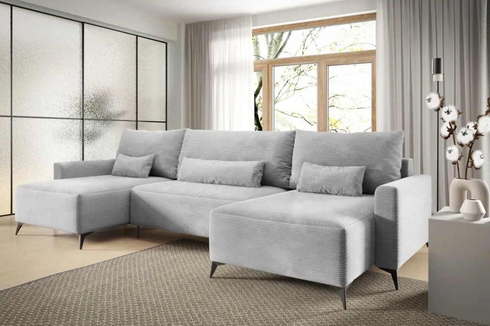 Narożniki>BROMARKT Szary narożnik sztruksowy na nóżkach w kształcie U LORENZO