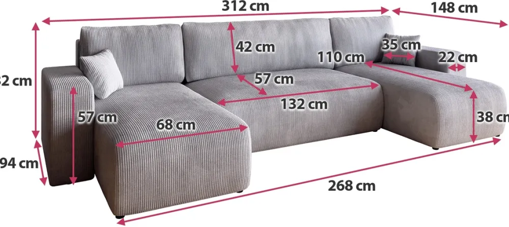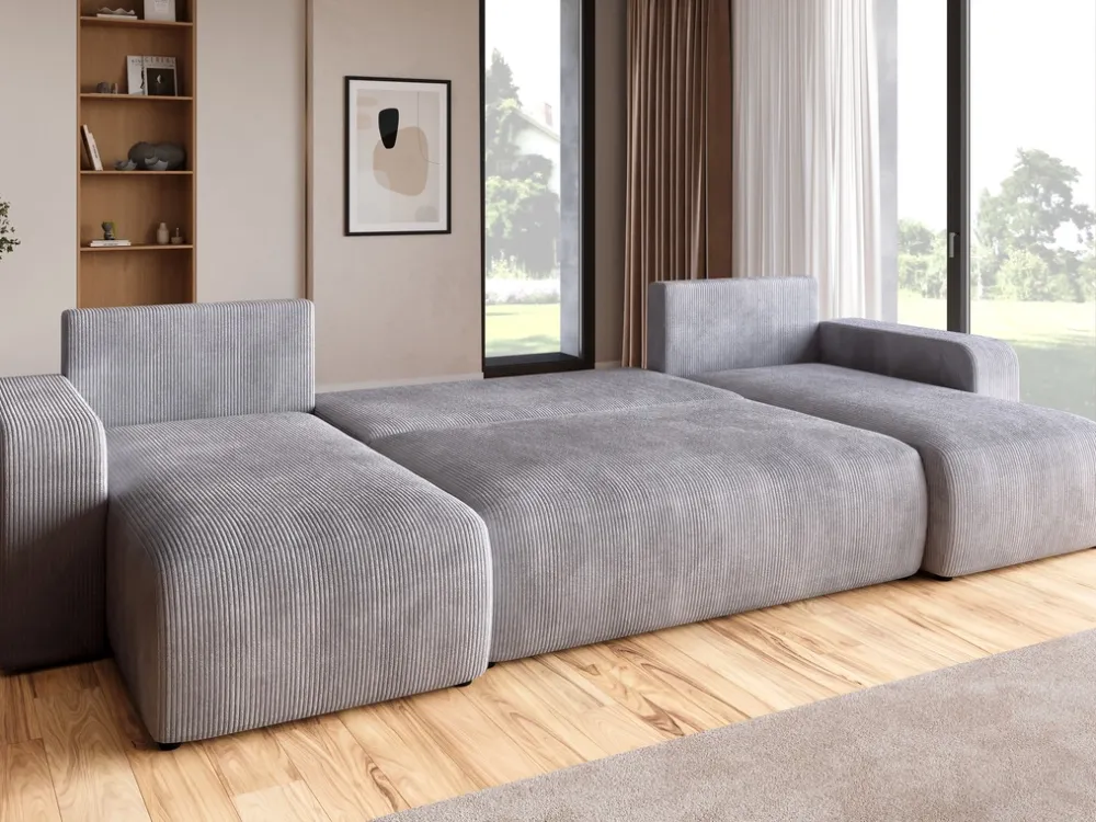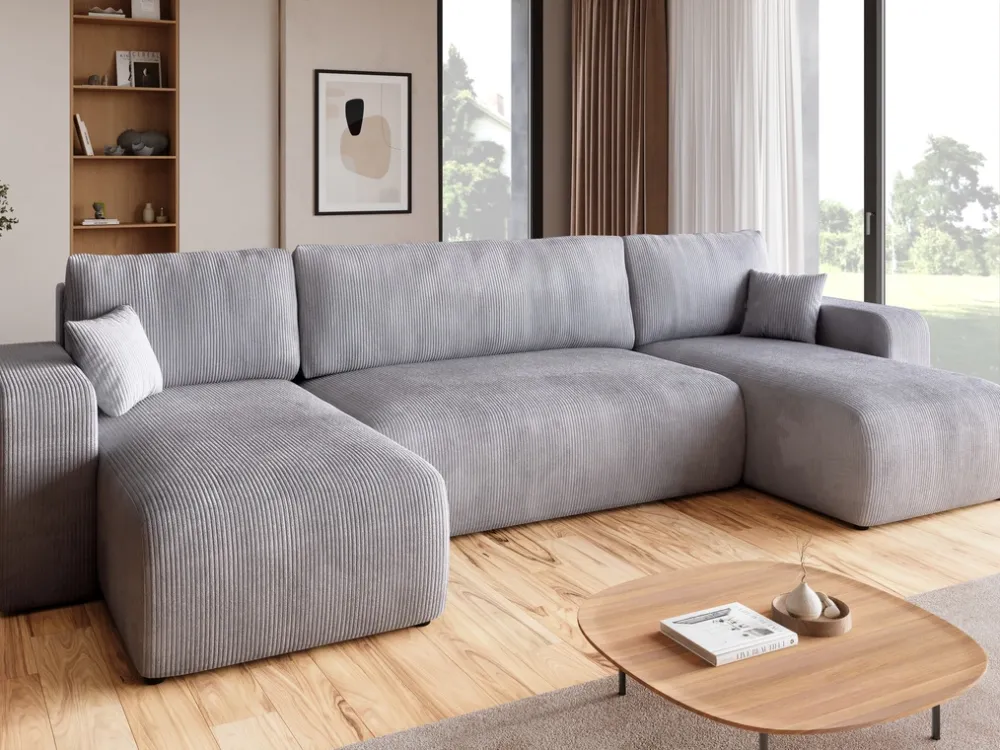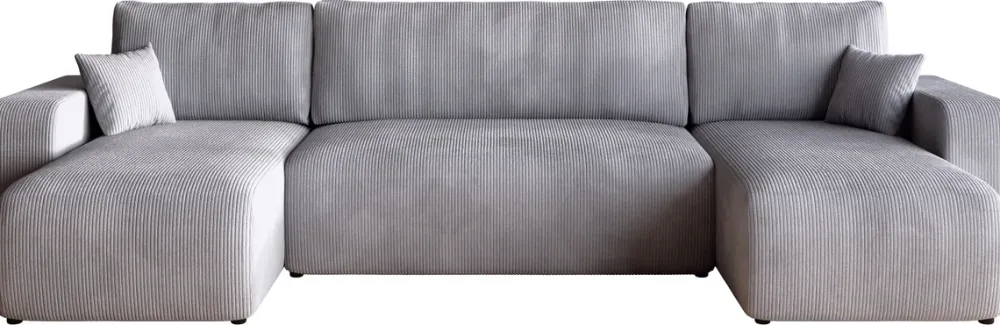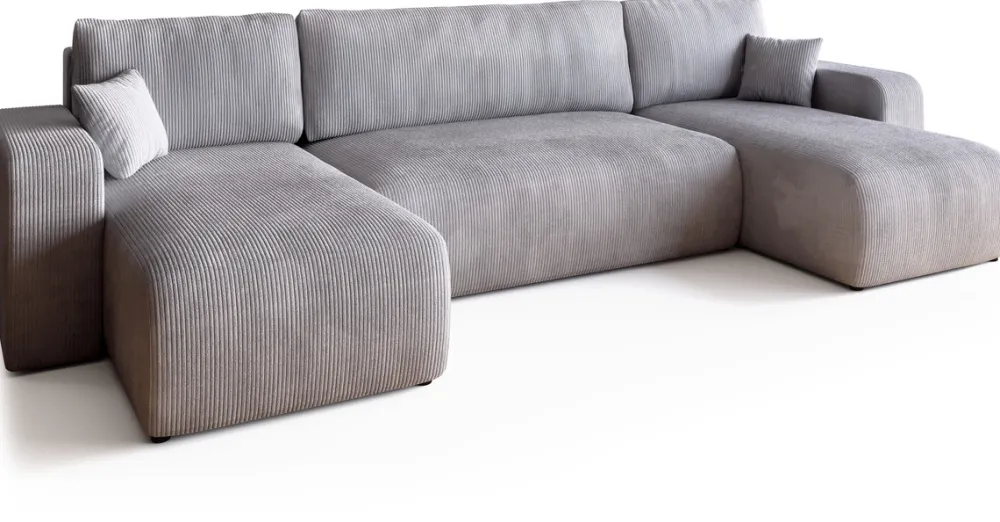 Narożniki>BROMARKT Szary narożnik sztruksowy z funkcją spania do salonu PUMI U