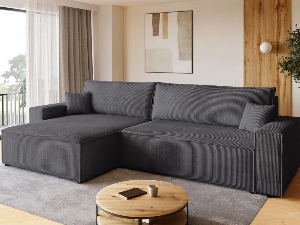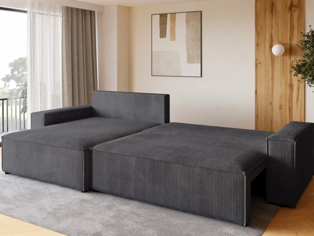 Narożnik z funkcją spania 125×230 cm – styl, wygoda i sztruksowy urok w Twoim salonie