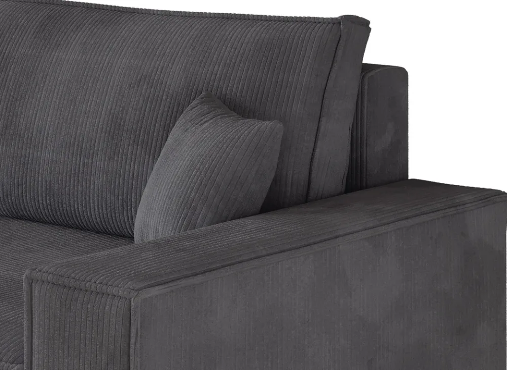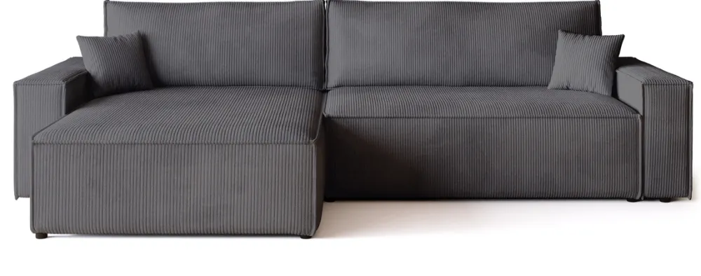 Sztruksowa tkanina zachwyca nie tylko wyglądem, ale też fakturą – miękka i ciepła, tworzy przytulną atmosferę w każdym wnętrzu. Praktyczny pojemnik na pościel pozwala łatwo utrzymać porządek, a prosta forma narożnika sprawia, że pasuje zarówno do wnętrz nowoczesnych, jak i klasycznych.