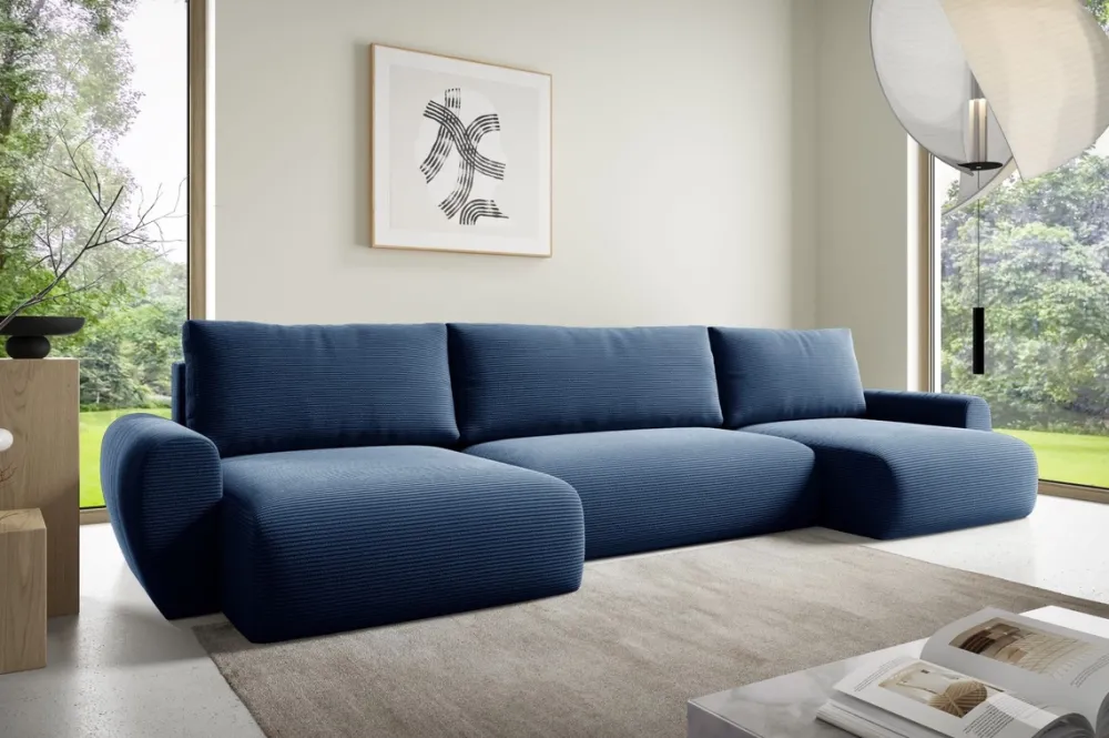 Narożniki>BROMARKT Sztruksowa kanapa narożna do salonu z funkcją spania w kształcie U PATI
