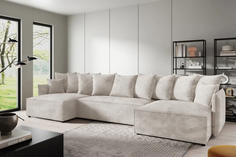 Narożniki>BROMARKT Sztruksowy narożnik rozkładany z funkcją spania duży ARTUR U