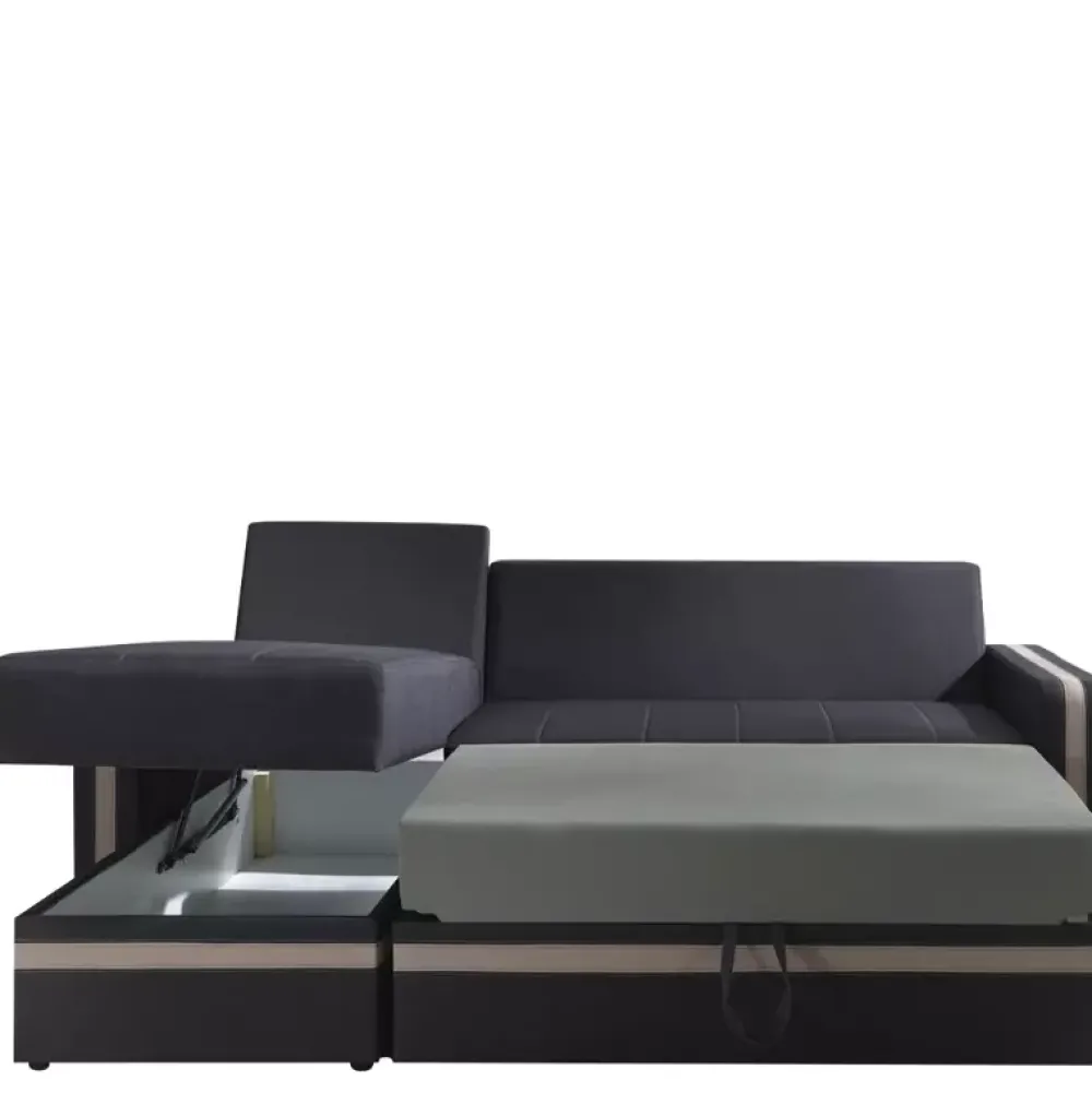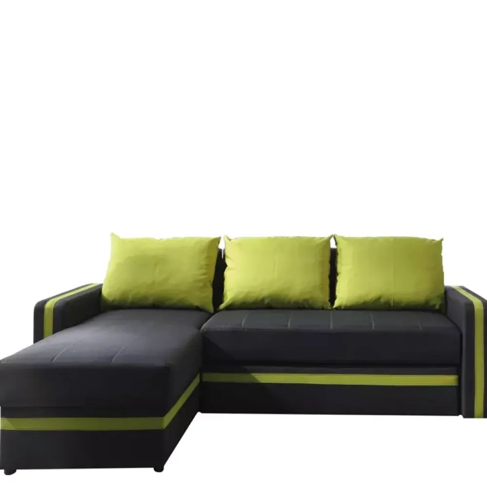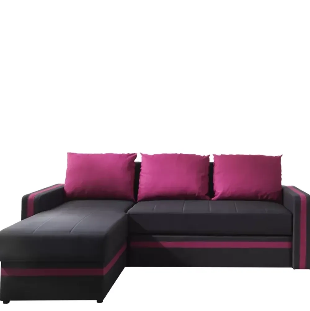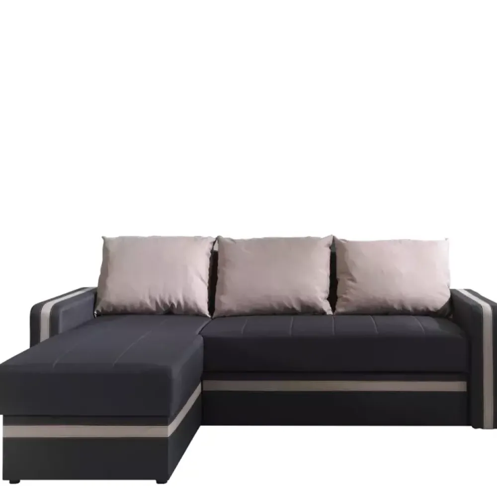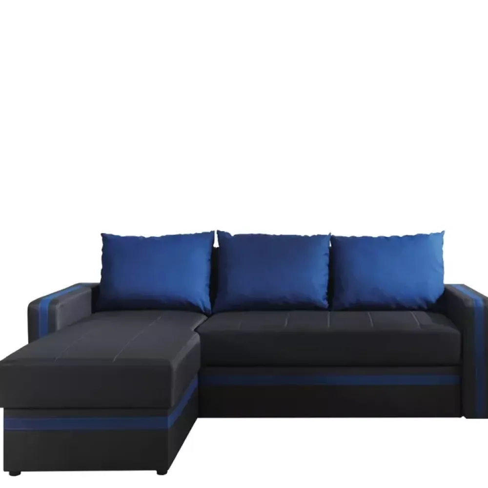 - Uniwersalna kanapa narożna z funkcją spania o wymiarach 140 × 200 cm. Narożnik wyposażony został również w obszerny pojemnik na pościel umieszczony pod wysuniętą leżanką.