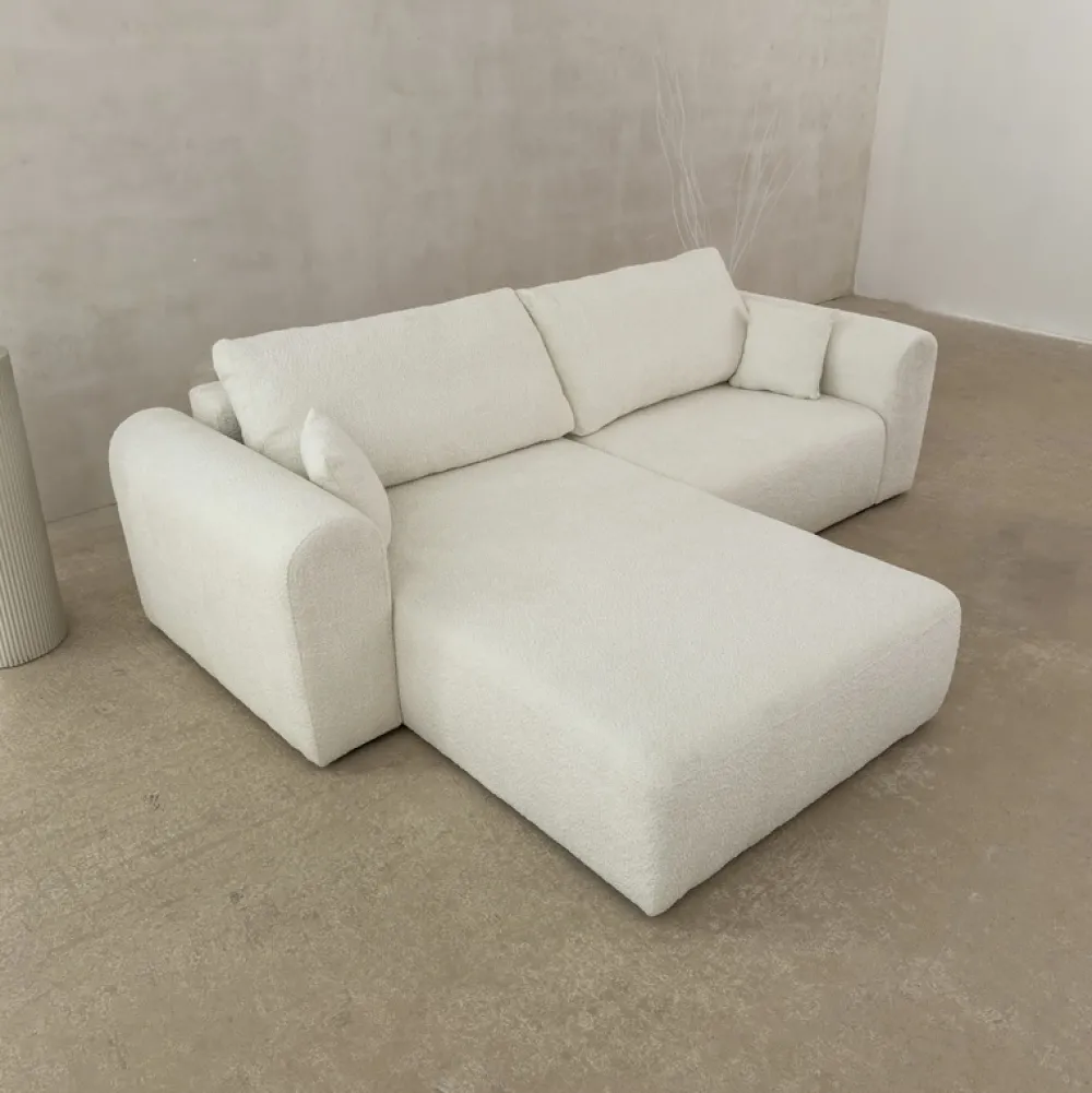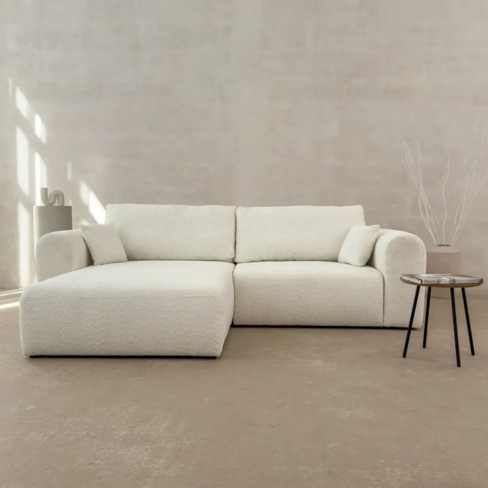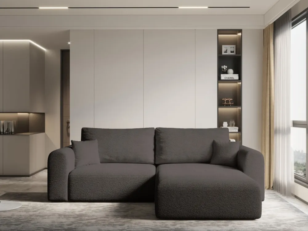 Jeśli szukasz narożnika do salonu, który łączy w sobie funkcję spania, pojemnik na pościel, wygodne poduszki i elegancką tkaninę boucle, nasza propozycja spełni wszystkie Twoje oczekiwania. Wybierz komfort, styl i praktyczność w jednym meblu, który odmieni Twój salon i sprawi, że codzienny wypoczynek będzie jeszcze przyjemniejszy.