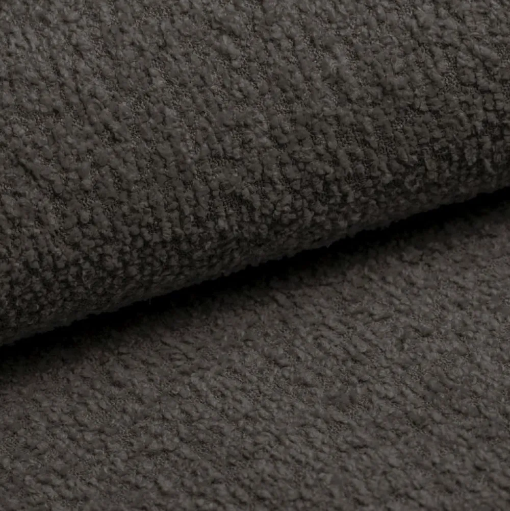 Tapicerka narożnika wykonana jest z modnej tkaniny boucle, która charakteryzuje się wyjątkową miękkością i trwałością. Boucle to materiał, który dodaje wnętrzu elegancji i stylu, a jednocześnie jest łatwy w utrzymaniu czystości. Tapicerowane plecy narożnika pozwalają na swobodne ustawienie go w dowolnym miejscu salonu, bez konieczności ukrywania tyłu mebla.