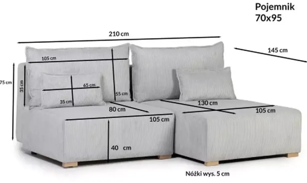 Dzięki praktycznemu pojemnikowi na pościel, ten narożnik to prawdziwy mistrz w oszczędzaniu przestrzeni. Schowaj w nim koce, poduszki czy pościel, zyskując tym samym więcej miejsca w innych częściach domu. To doskonałe rozwiązanie dla tych, którzy cenią sobie porządek i funkcjonalność w jednym.