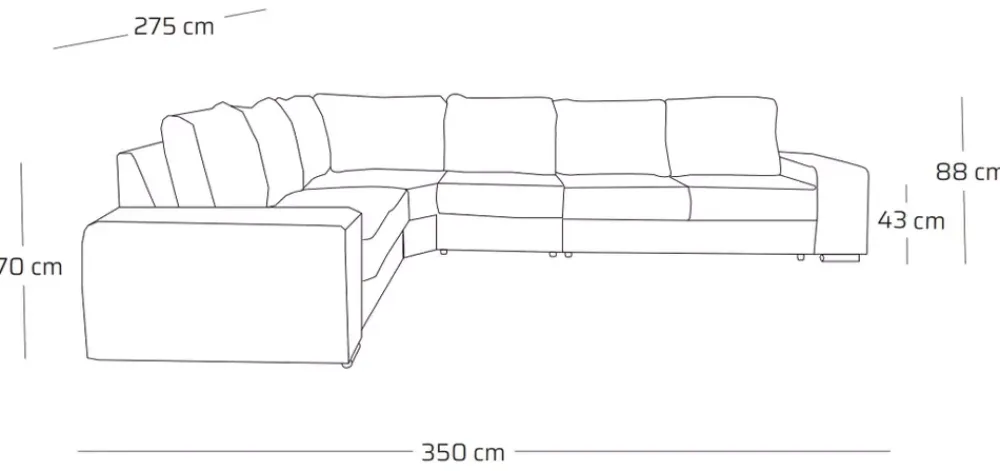 - Narożnik LETO, ozdobiony siedmioma poduszkami, jest stworzony z myślą o tych, którzy pragną cieszyć się komfortem podczas rodzinnych spotkań czy wieczorów. Dodatkowo narożnik oferuje opcję funkcji spania, dostosowując się do Twoich potrzeb.