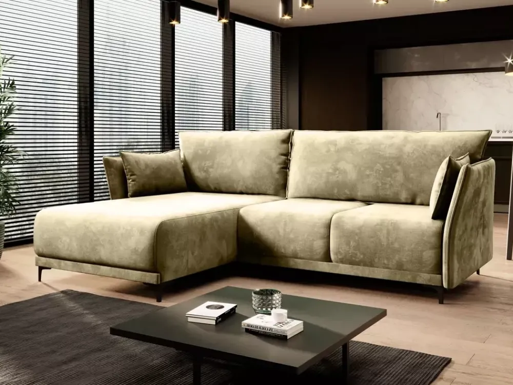 - Rozkładana rogówka do salonu STYLO z metalowymi nóżkami podkreśli nowoczesny design, jednocześnie ułatwiając utrzymanie czystości pod meblem. Cztery luźne poduchy zapewnią komfortowy odpoczynek oraz dodają wolnostojącej rogówce charakteru.