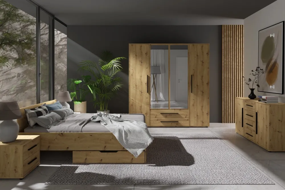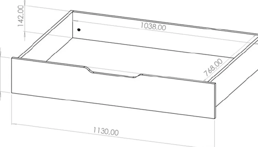 Dzięki pojemnikowi MAXIDO zyskujesz dodatkowe miejsce bez potrzeby dokupowania osobnej komody czy skrzyni. Szuflada płynnie wsuwa się pod łóżko, pozostając niemal niewidoczną, a jej prosta forma doskonale uzupełnia minimalistyczny styl łóżka MAXIDO 160×200. Brak uchwytów został zastąpiony praktycznym wycięciem we froncie, które nie tylko ułatwia wysuwanie, ale też podkreśla nowoczesny charakter mebla.