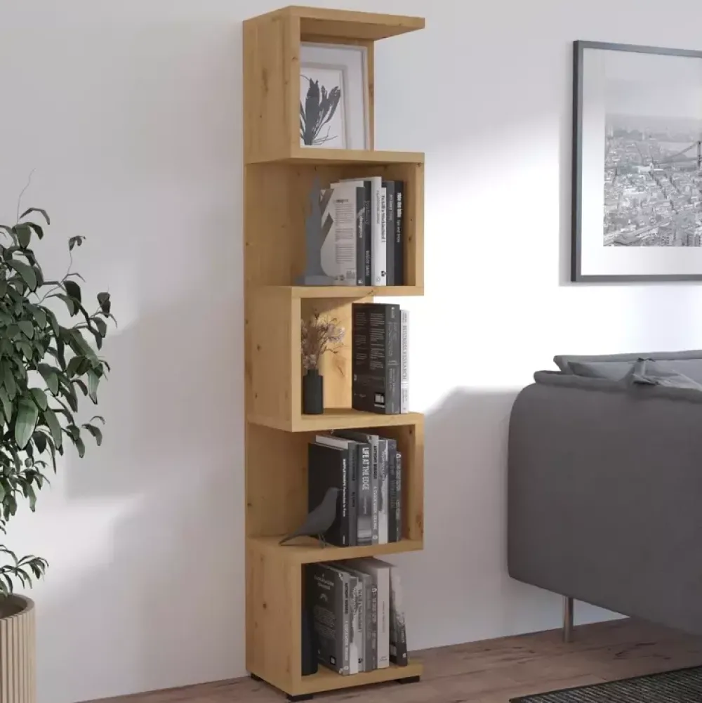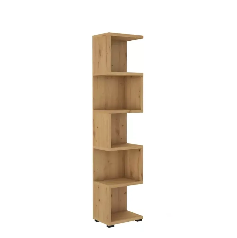 - Regał ma 41,4 cm szerokości i posiada pięć poziomów, na których znajdziesz miejsce na roślinki, książki, czy zabawki. Dąb artisan wprowadzi przytulny klimat do wnętrza.