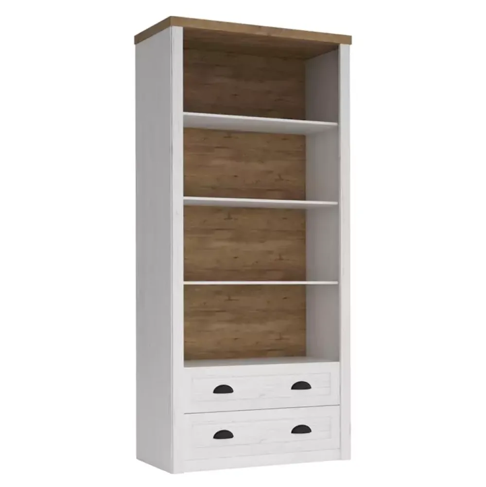 - Regał PALAZO to propozycja, która pozwoli ci znaleźć miejsce na książki oraz inne rozmaite akcesoria. Został wyposażony w trzy otwarte półki oraz dwie pojemne szuflady z metalowymi uchwytami w formie muszelek.