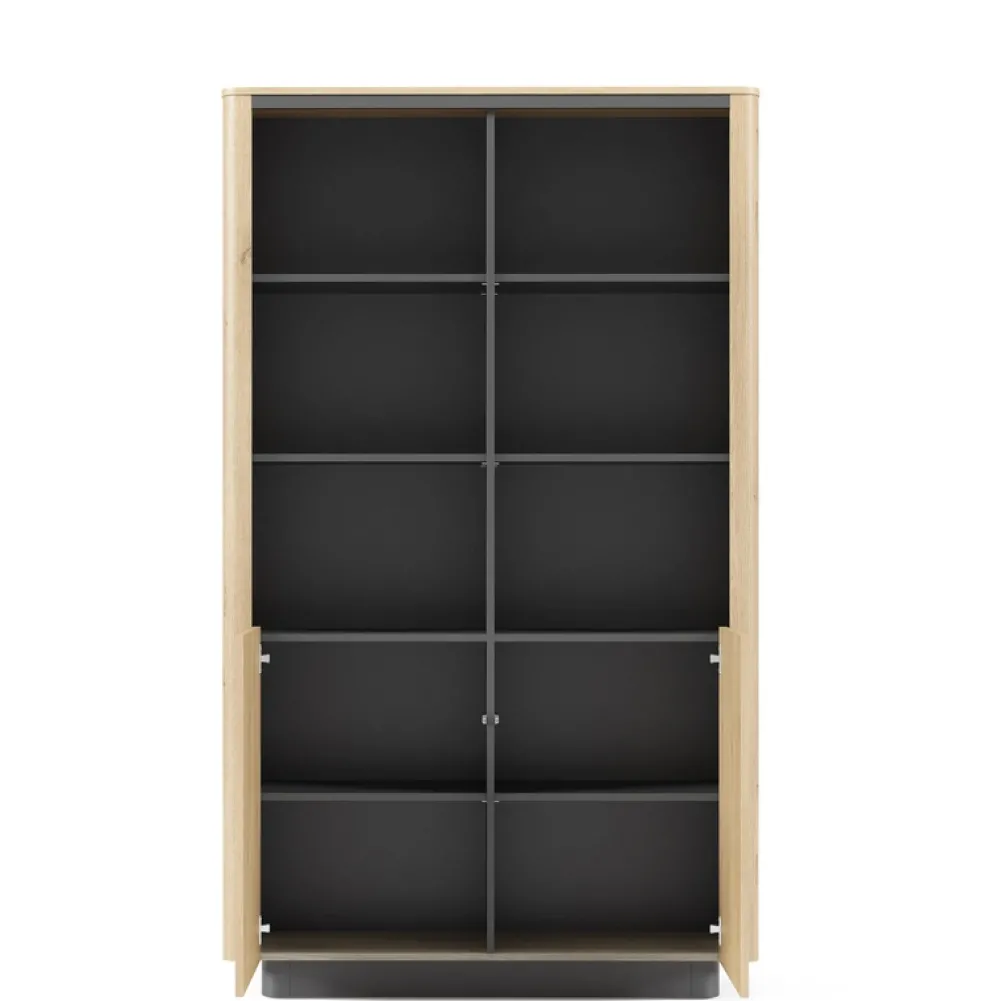 Dzięki uniwersalnej kolorystyce regał z łatwością dopasuje się do aranżacji nowoczesnych, loftowych i skandynawskich. Sprawdzi się jako regał do gabinetu, biblioteczka w salonie czy schowek w pokoju nastolatka. A brak uchwytów i nowoczesne zawiasy to gwarancja komfortowego użytkowania każdego dnia.