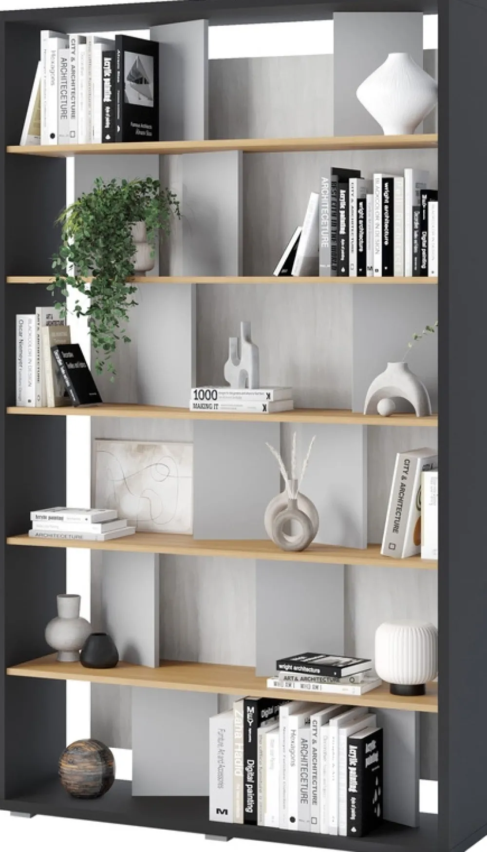 Dzięki temu regałowi możesz w efektowny sposób wyeksponować swoje ulubione książki, ozdoby, pamiątki czy inne elementy dekoracyjne. Przegródki nadają każdej półce indywidualny charakter, co pozwala na tworzenie różnorodnych aranżacji – od minimalistycznych po bardziej złożone, pełne kontrastów. Taka konstrukcja doskonale sprawdzi się zarówno w nowoczesnym salonie, biurze, jak i w pokoju dziennym, dodając wnętrzu wyjątkowego uroku.