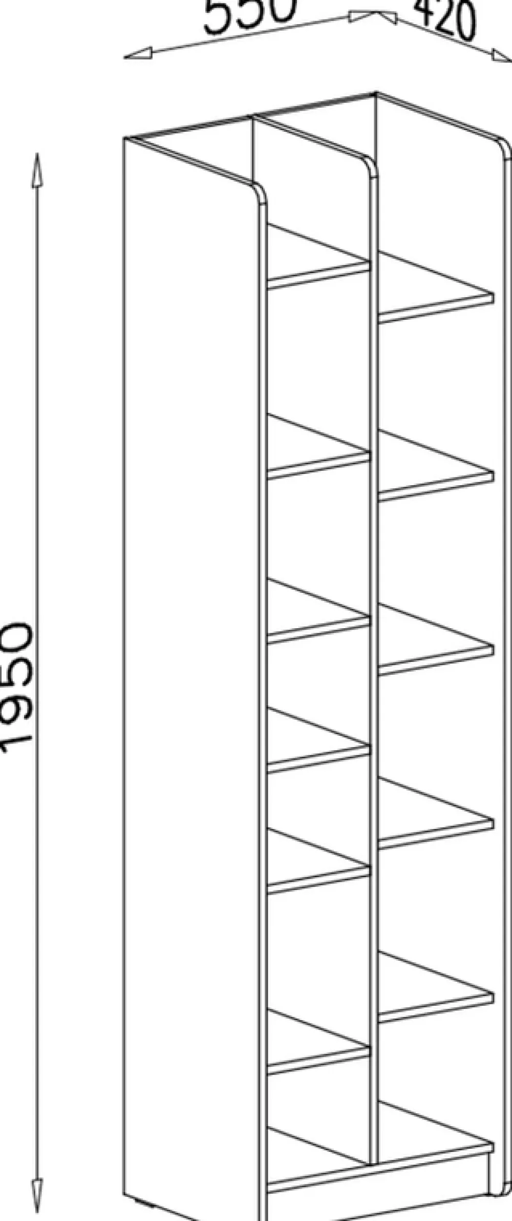 - Młodzieżowy regał na książki ALDENO o szerokości 55 cm to świetna propozycja do pokoju nastolatka. Wyposażony został w masę półek o różnej wysokości. Obrzeża zostały zabezpieczone okleiną ABS. Regał na książki wykonany jest z płyty laminowanej.