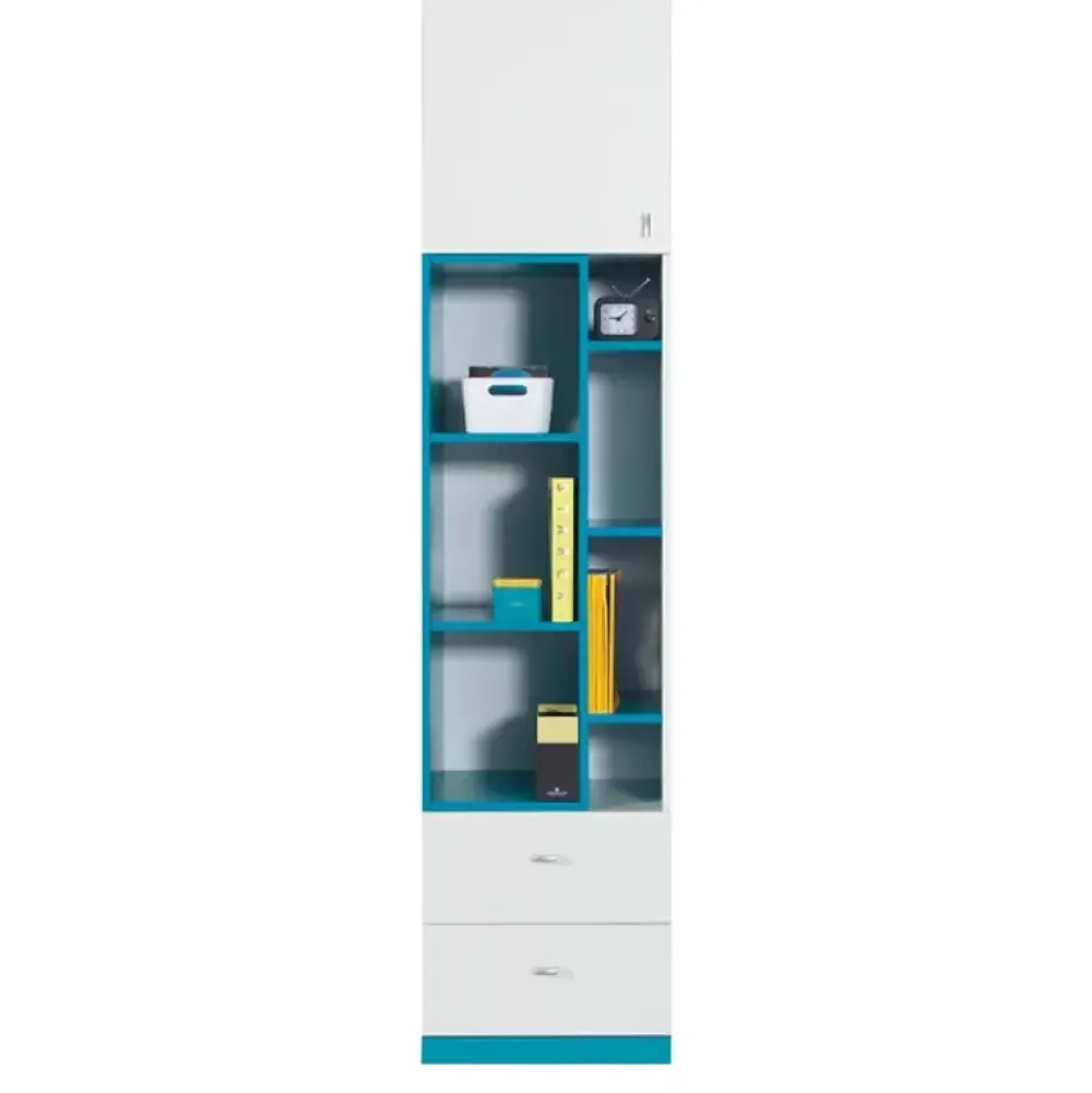 Regał z kolekcji MALVES posiada bardzo estetyczną oraz nowoczesną stylistykę, dzięki której świetnie sprawdza się w dzisiejszych aranżacjach pokoi młodzieżowych. Regał został wyposażony we dwie pojemne szuflady u dołu, a nad nimi wiele otwartych wnęk, na których możesz umieścić swoje książki lub kwiaty, którymi ożywisz pomieszczenie. Dodatkowo regał posiada szafkę u góry, która będzie dodatkowym miejscem na twoje rzeczy.