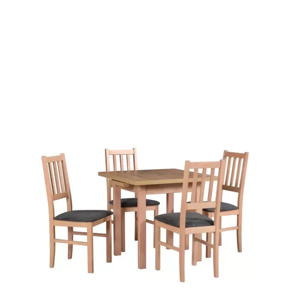 - Zestaw do jadalni z kolekcji MOTTA to kompletna propozycja dla niewielkiej jadalni. W zestawie miejsce znalazły cztery krzesła oraz stół wyposażony w funkcję rozkładania, która zapewni ci dodatkową przestrzeń, kiedy będziesz jej potrzebować.
