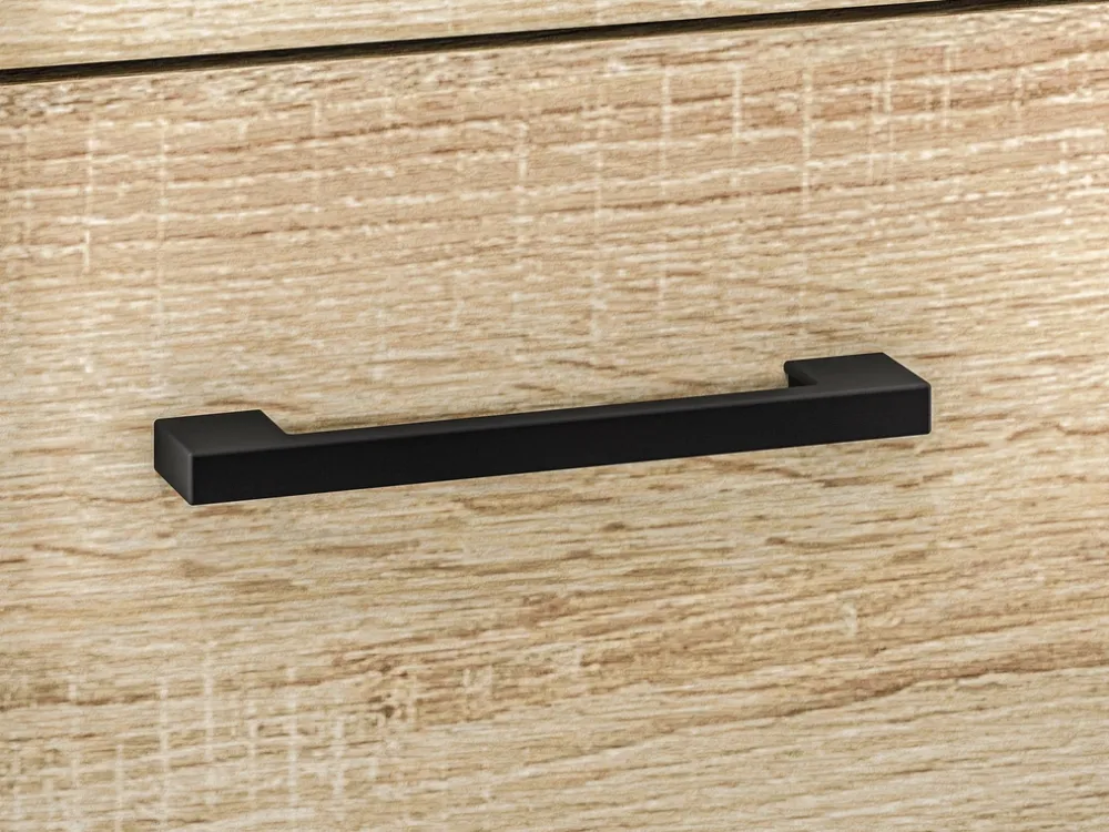 - Uchwyty zostały wykonane z tworzywa sztucznego w czarnym kolorze. Elegancki kształt doskonale komponuje się z całokształtem mebla.