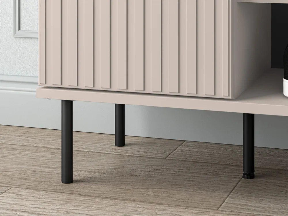 - Nóżki szafy wykonane z metalu w kolorze czarnym umożliwiają wygodne odkurzanie pod szafką.