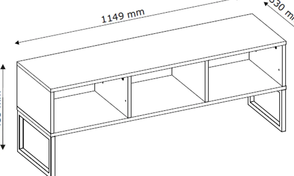 - Otwarta półka – idealna na dekoder, konsolę lub sprzęt audio