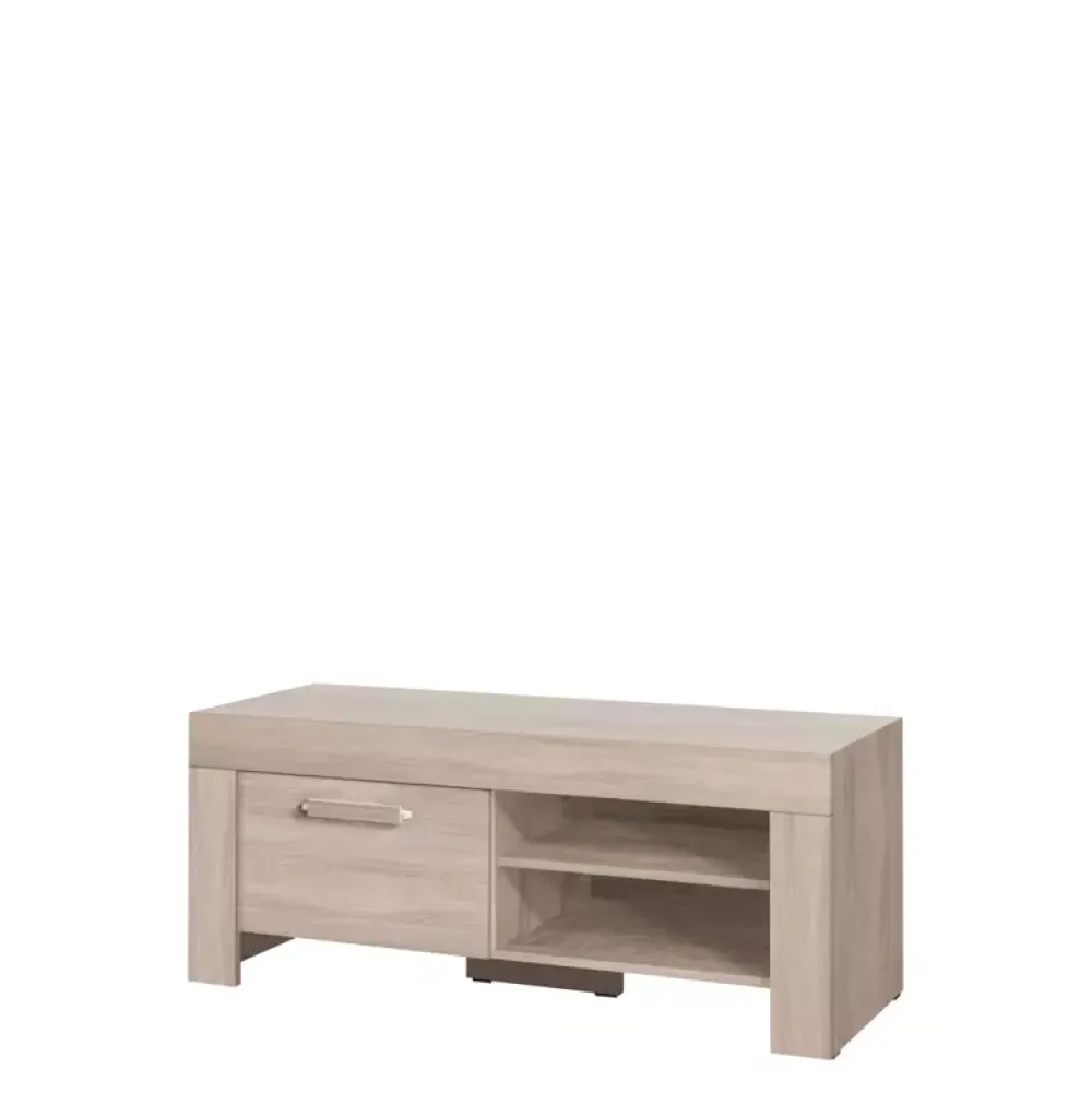 - Szafka rtv wyposażona w półki oraz drzwiczki uchylne w dół, za którymi znajdują się półki. Szafka o szerokości 120 cm.