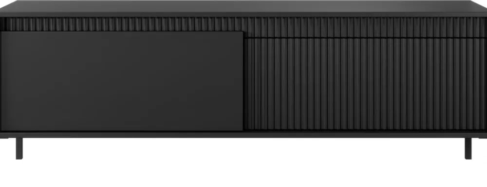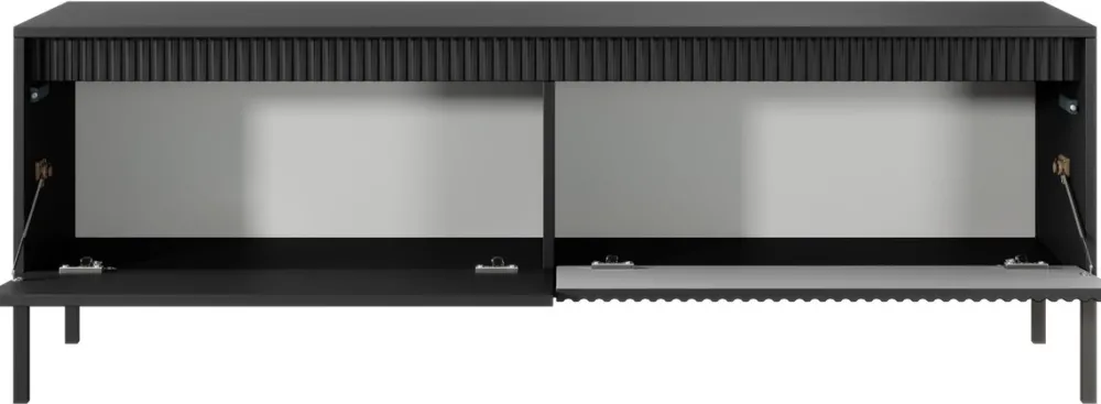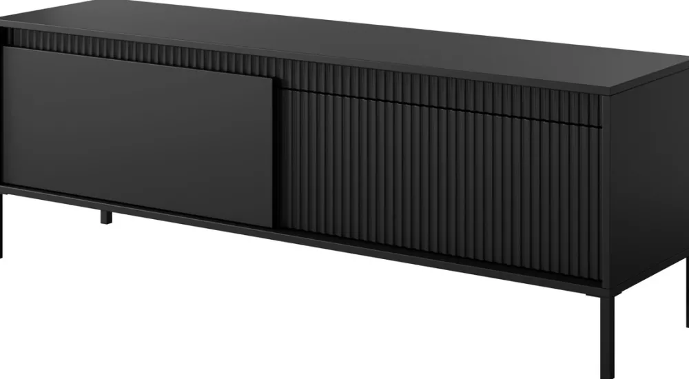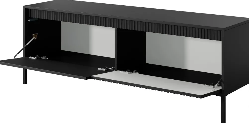 - Szafka RTV 153 cm SAREVO z frezowanymi frontami i wysokimi metalowymi nóżkami to elegancki i funkcjonalny wybór do salonu. Dwoje drzwi z półkami zapewnia porządek i estetykę w strefie multimedialnej.