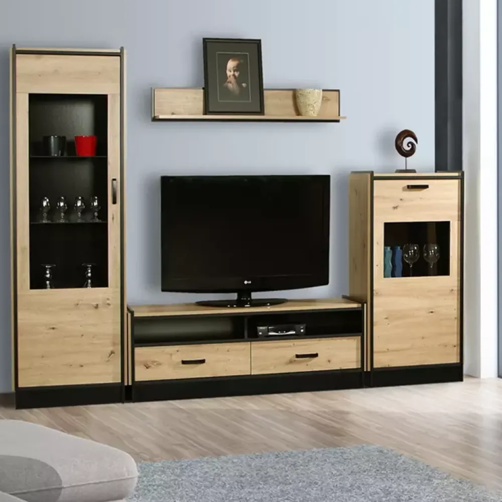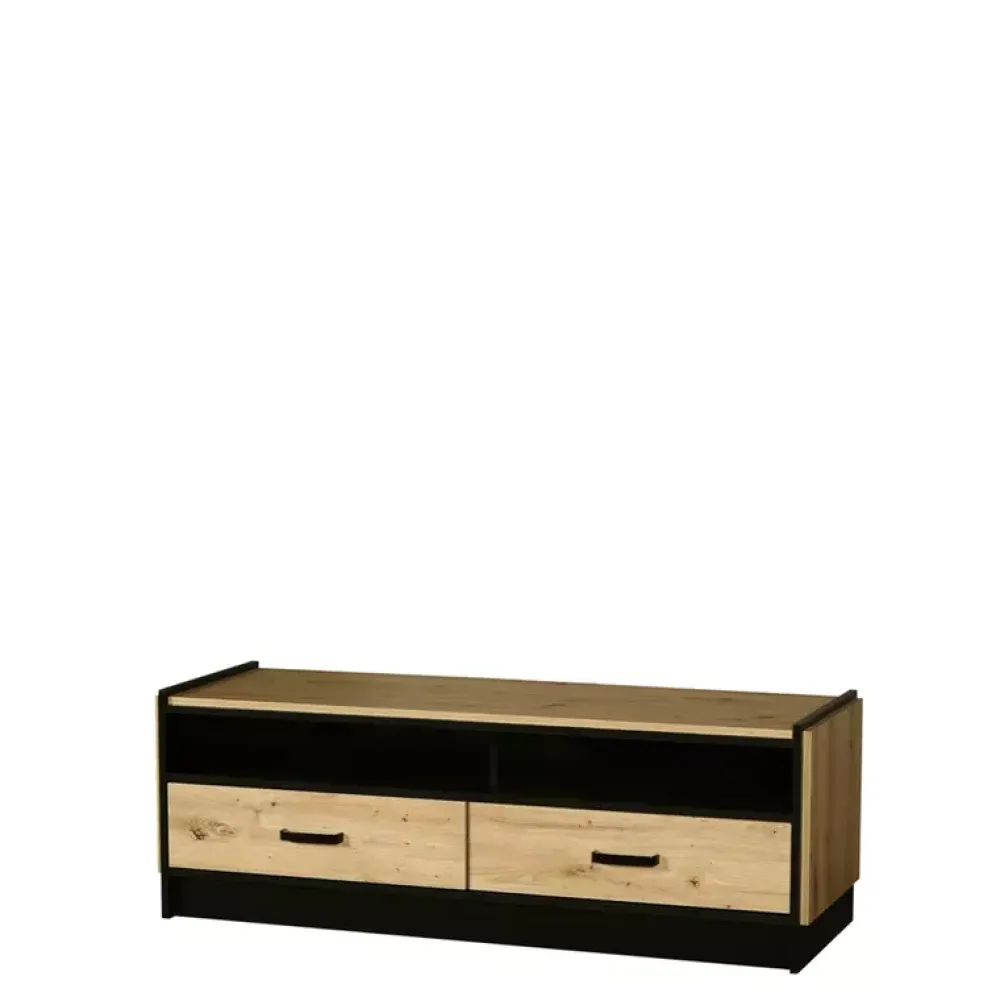 Szafka RTV KALETTO to doskonałe rozwiązanie dla osób poszukujących praktycznego i eleganckiego mebla do swojego salonu. Wykonana z wysokiej jakości płyty laminowanej, gwarantuje trwałość i odporność na uszkodzenia mechaniczne oraz wilgoć. W skład szafki wchodzą dwie pojemne szuflady, idealne do przechowywania wszelkiego rodzaju akcesoriów RTV, jak piloty, kable czy głośniki. Dzięki nim, w łatwy sposób zapanujesz nad chaosem wokół telewizora. Metalowe uchwyty, w których znajdują się szuflady, gwarantują stabilność oraz umożliwiają wygodne i ciche otwieranie i zamykanie szafki. Dodatkowo, szafka RTV posiada obrzeża zabezpieczone okleiną PCV, co chroni ją przed uszkodzeniami i zapewnia trwałość przez długi czas. W klasycznym, ale nowoczesnym stylu, szafka RTV będzie idealnym dopełnieniem wyposażenia Twojego salonu. Dzięki uniwersalnemu wzornictwu, doskonale sprawdzi się w każdym wnętrzu i z łatwością wpasuje się w istniejący już styl mieszkania.