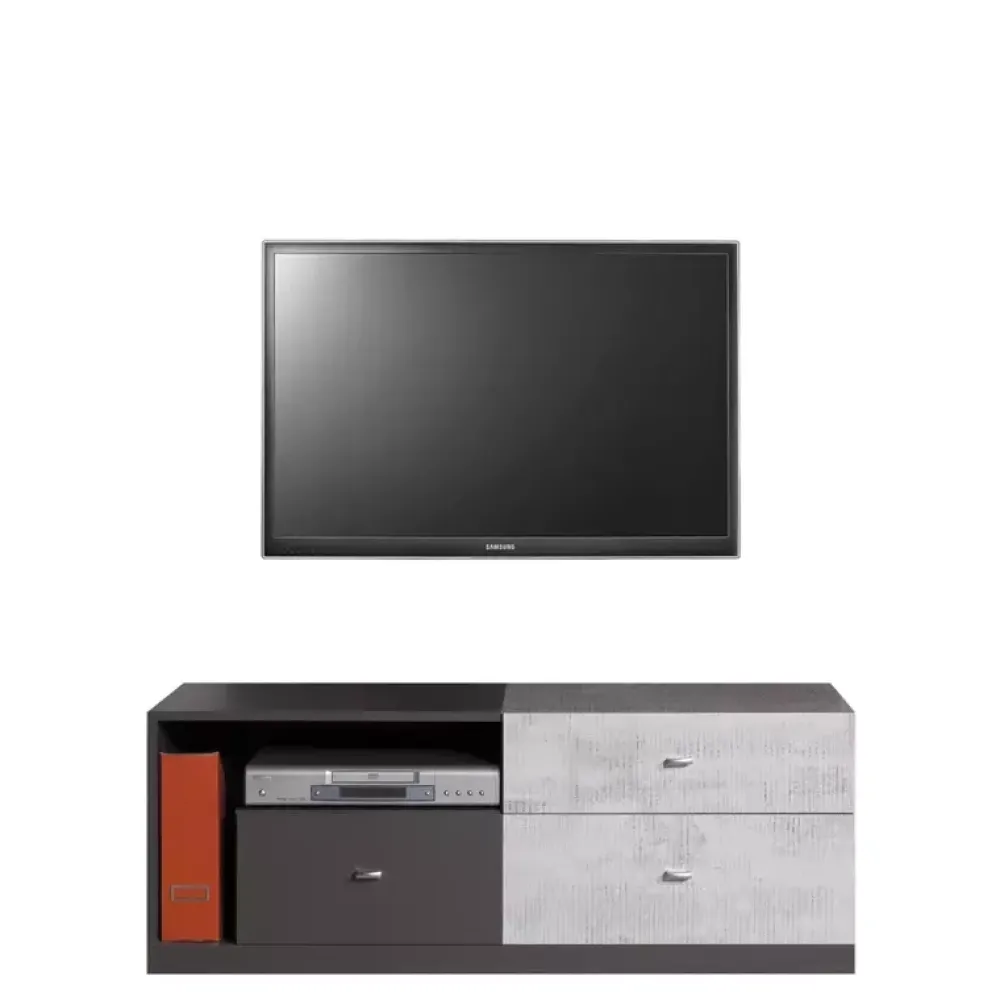 - Szafka pod telewizor wyposażona we wnękę na sprzęt RTV i trzy szuflady na gry, filmy i muzykę oraz akcesoria do sprzętów RTV.