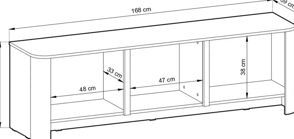 - Wymiary: szerokość 168 cm, głębokość 39 cm, wysokość 52 cm