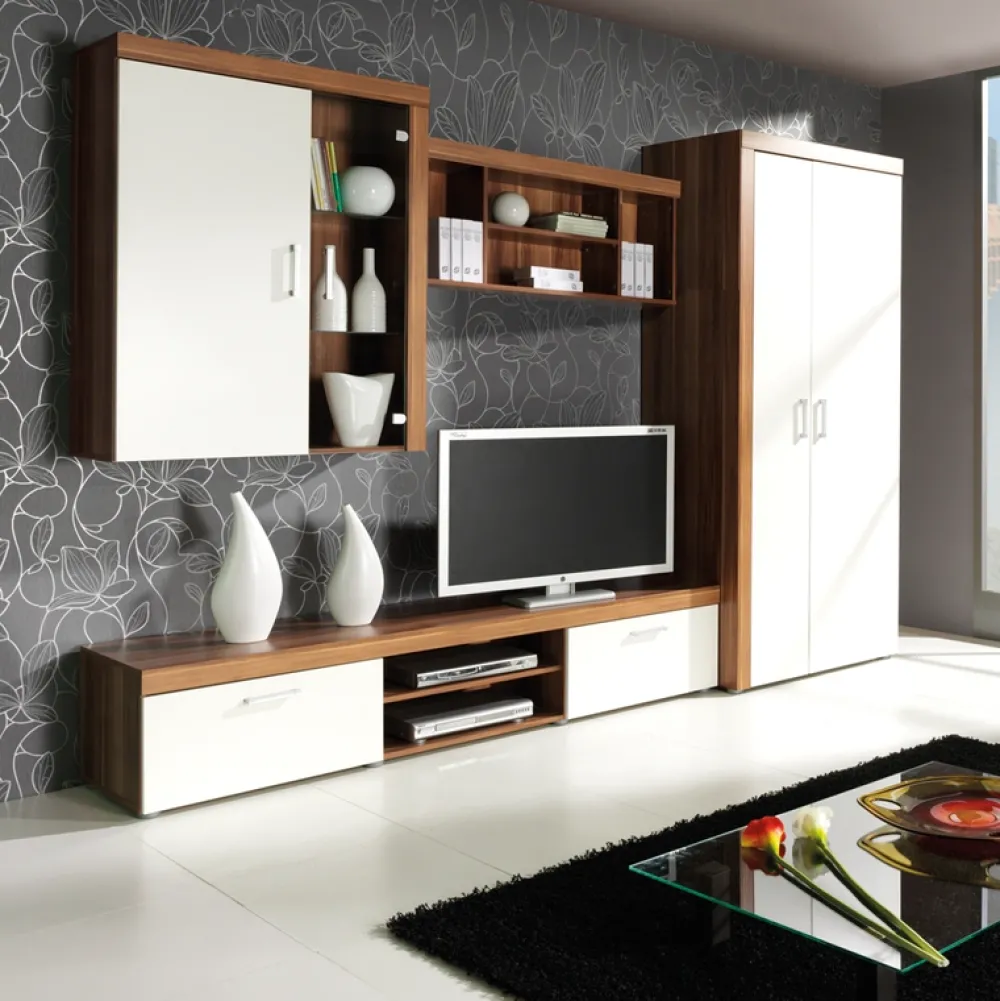 Szafka wisząca do salonu wyróżnia się swoją elegancją dzięki prostym, ale wyrafinowanym liniom oraz starannemu wykończeniu. Dodatkowo, obrzeża szafki są zabezpieczone okleiną ABS, która zapewnia trwałość, odporność na uszkodzenia, zarysowania oraz odpryski, gwarantując długotrwałe użytkowanie.